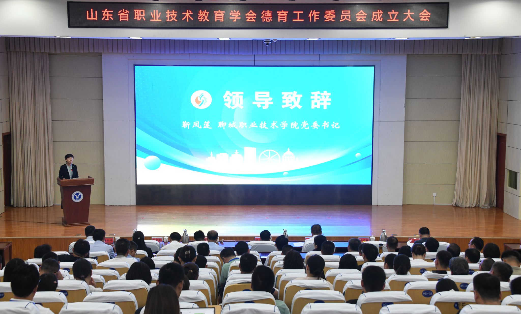 8月18日,山东省职业技术教育学会德育工作委员会成立大会在聊城职业技术学院举行。中国职业技术教育学会副秘书长刘宝民,山东省教育厅职业教育处副处长钟京志,山东省职业技术教育学会会长石忠,聊城市教育和体育局党组成员、副局长杜长涛出席会议。聊城职业技术学院党委书记靳凤莲,学校全体领导班子成员参加活动。会议由学校党委副书记、院长徐龙海主持。