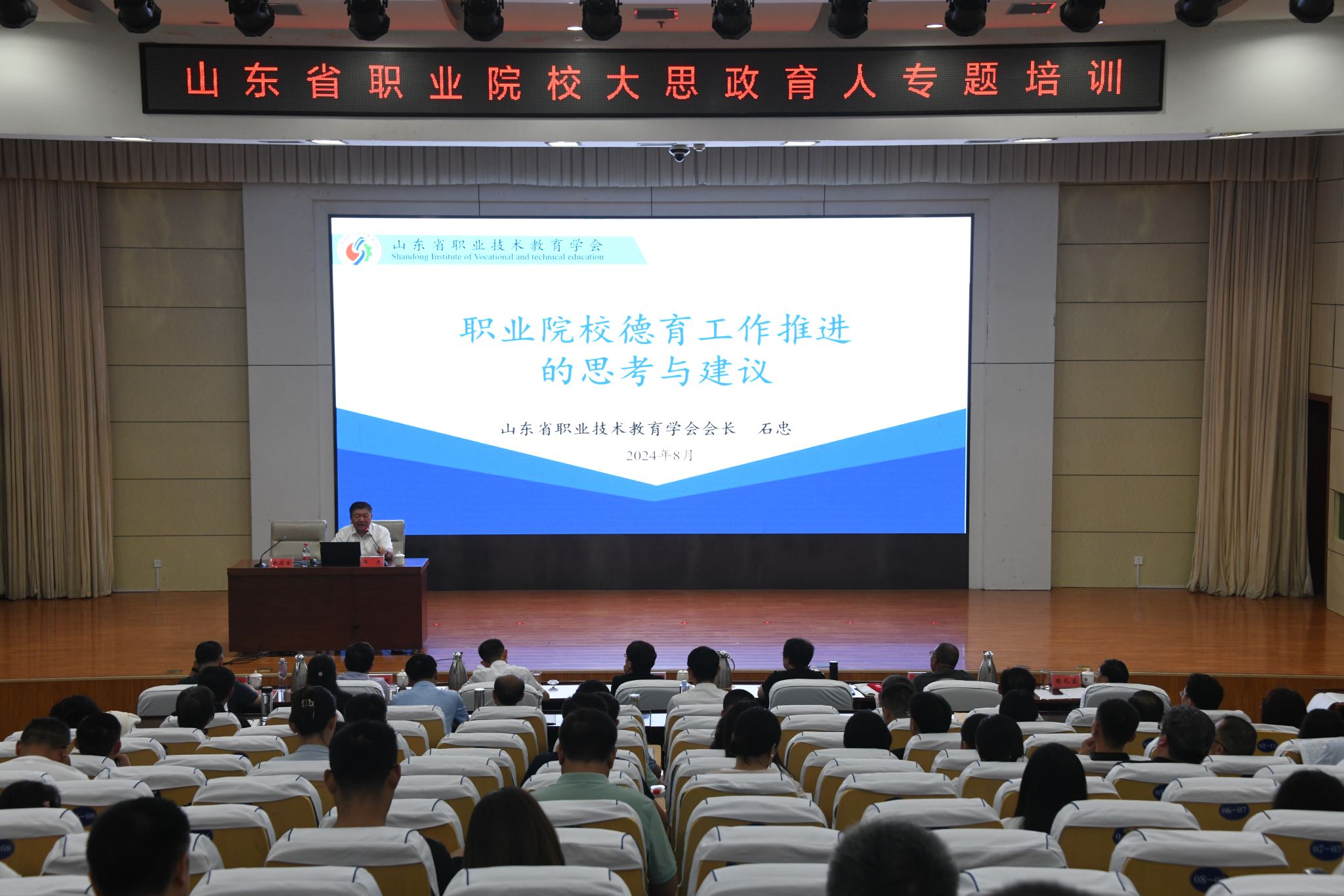 石忠作了题为《职业院校德育工作推进的思考与建议》的报告。他从国家层面和山东省层面强调了职业院校德育工作的战略地位,阐释了新时代德育工作的内涵建设,对职业院校德育工作进行了深入思考,并提出了具体的德育工作的实施路径。