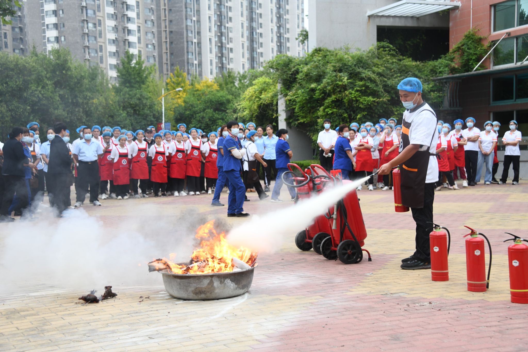 此次消防培训演练有效提高了餐厅员工、保安及物业等相关人员的消防安全意识和应急处置能力,为维护校园安全稳定提供了保障。