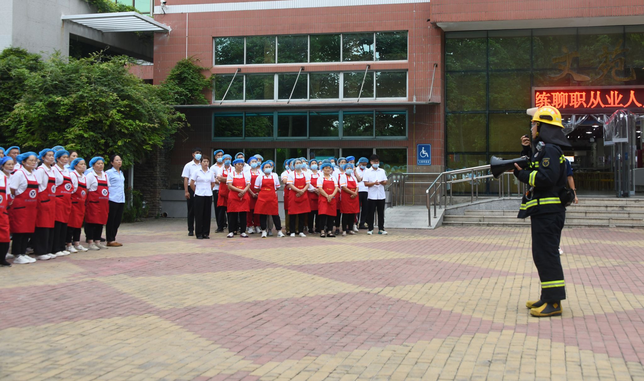 为进一步增强校园从业人员的消防安全意识,提高应急处置能力,9月11日,聊城职业技术学院邀请聊城市东昌府区新区消防救援站消防员来校开展校园消防安全演练,300余名餐厅、物业、保安从业人员参加了演练。