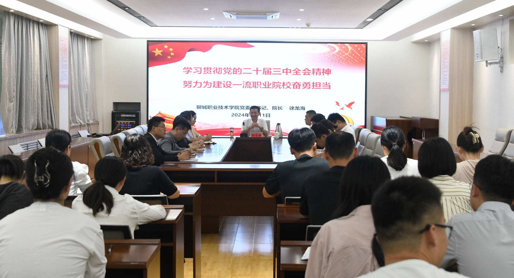 9月11日,党委副书记、院长徐龙海以“学习贯彻党的二十届三中全会精神 努力为建设一流职业院校奋勇担当”为题,为学校党员教师讲授专题党课。