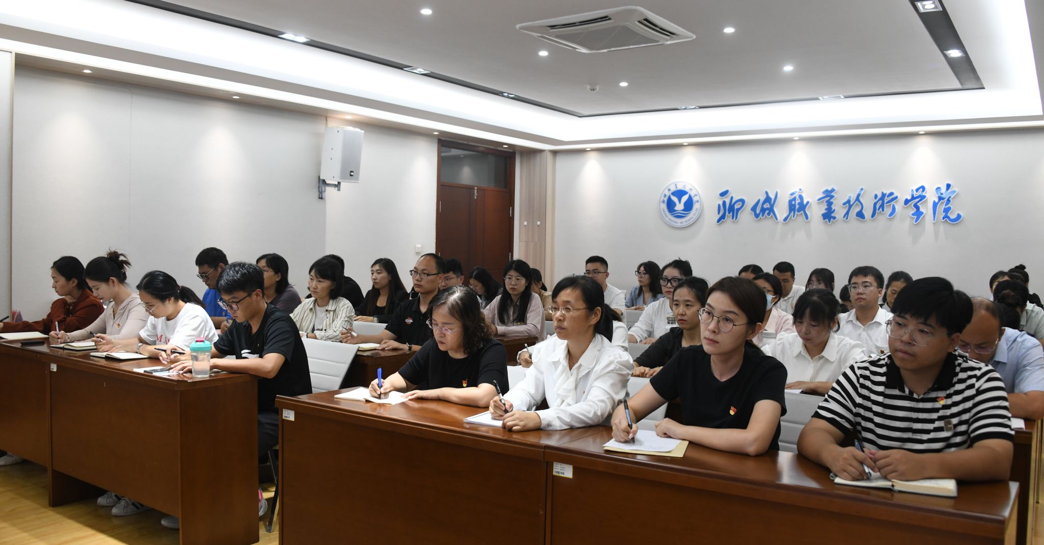 徐龙海围绕“学习贯彻党的二十届三中全会精神 努力为建设一流职业院校奋勇担当”主题,从高校教师讲什么、为何讲、如何讲二十届三中全会精神,不断为加快建设教育强国提供动力,有效支撑引领中国式现代化三个方面,结合学校实际,全面系统地阐释和宣讲深刻理解把握二十届三中全会精神的核心要义、充分认识新时代新征程深化教育综合改革的重大意义、聚焦立德树人拓展“大思政育人”建设工作格局。