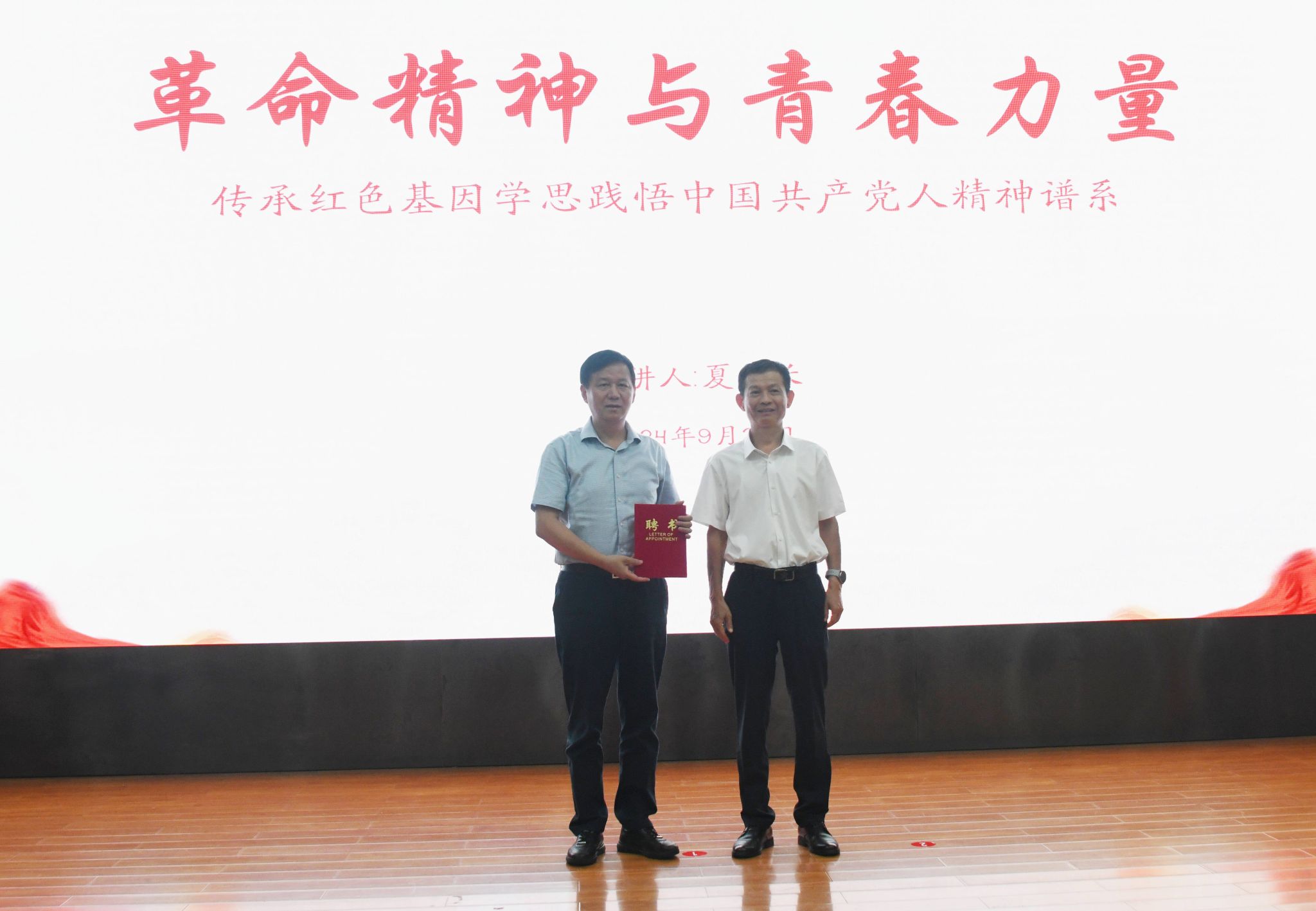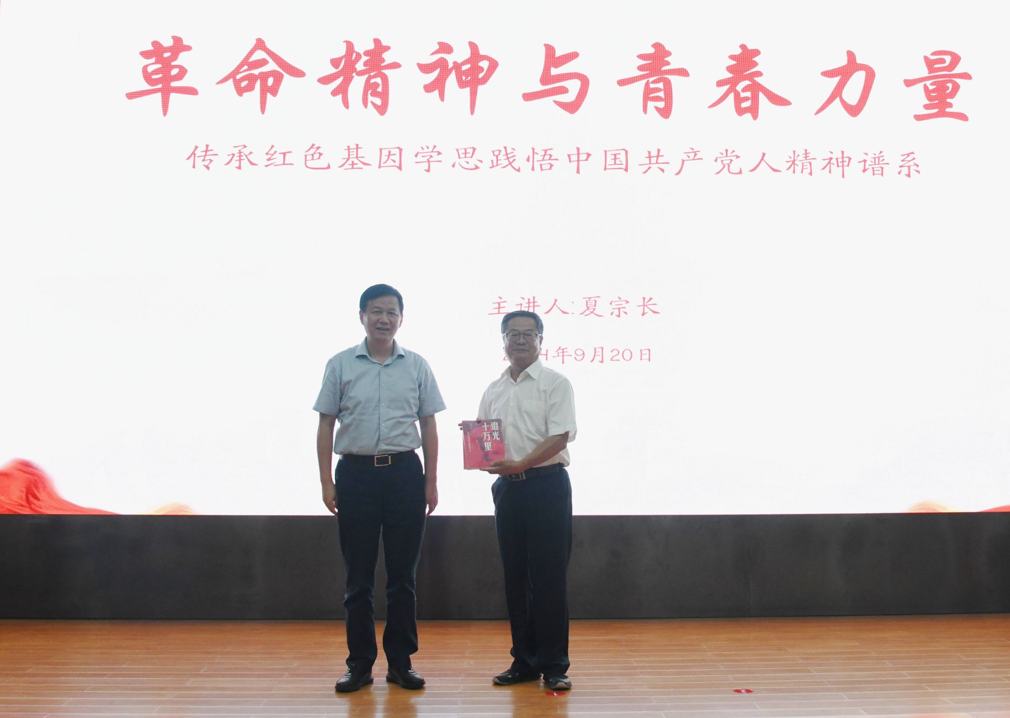 为贯彻落实党的二十届三中全会精神,以实际行动庆祝中华人民共和国成立75周年,9月20日,山东省革命老区建设促进会老区精神研究部部长夏宗长来到聊城职业技术学院,以“革命精神与青春力量---传承红色基因学思践悟中国共产党人精神谱系”为题,作“弘扬革命老区红色基因、学思践悟中国共产党人精神谱系”宣讲。