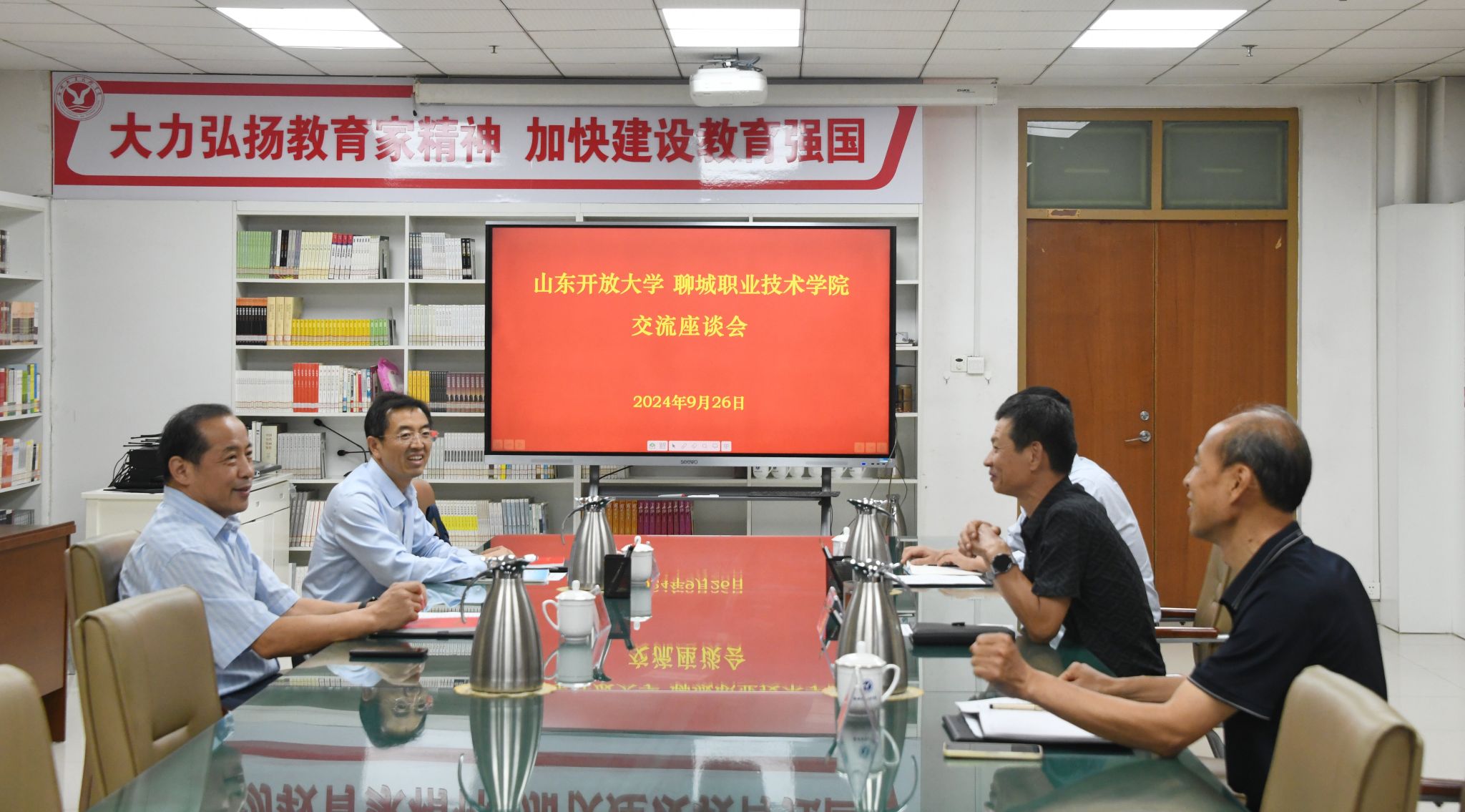 9月26日,山东开放大学党委副书记、校长司家军,继续教育学院院长高继宽一行来我校调研交流。学校党委副书记、院长徐龙海主持会议并讲话。党委委员、副院长高绪斌出席会议。