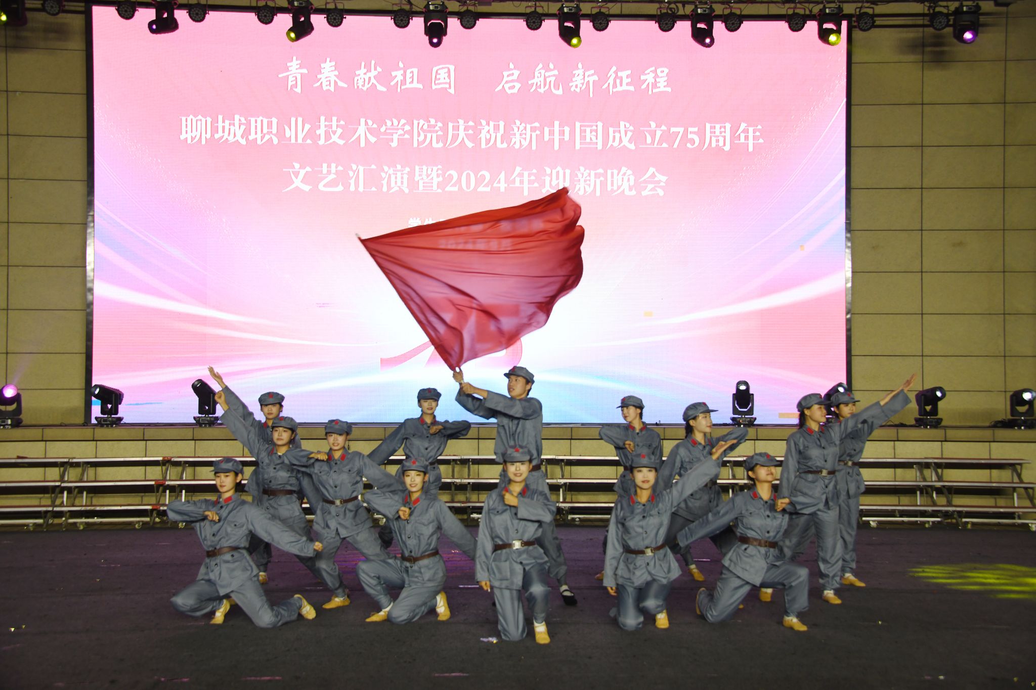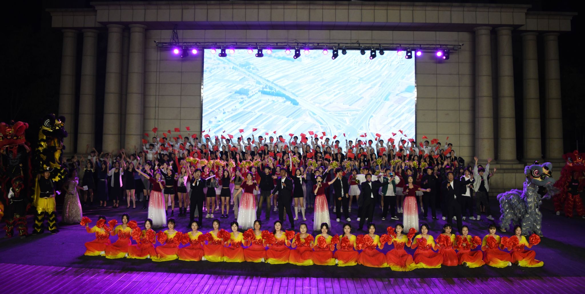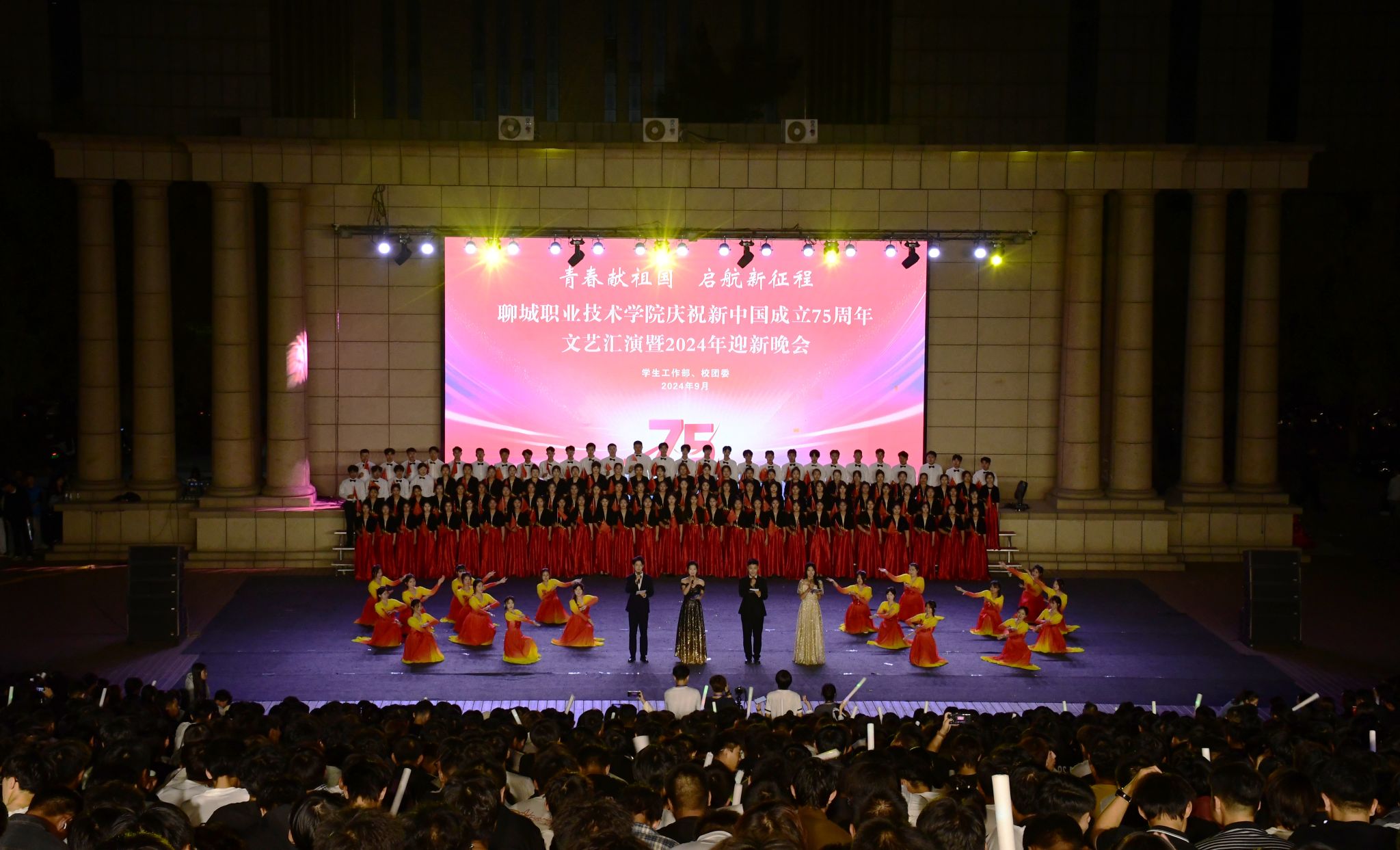 为庆祝中华人民共和国成立75周年,讴歌在中国共产党领导下人民不懈奋斗所取得的辉煌成就,展现青年学生精神风貌,9月28日,聊城职业技术学院在海源广场举办“青春献祖国 启航新征程”2024级迎新晚会。校团委书记张博文、校团委办公室副主任徐雪彤、各二级学院团总支书记、团总支副书记以及24级全体大一新生参加活动。
