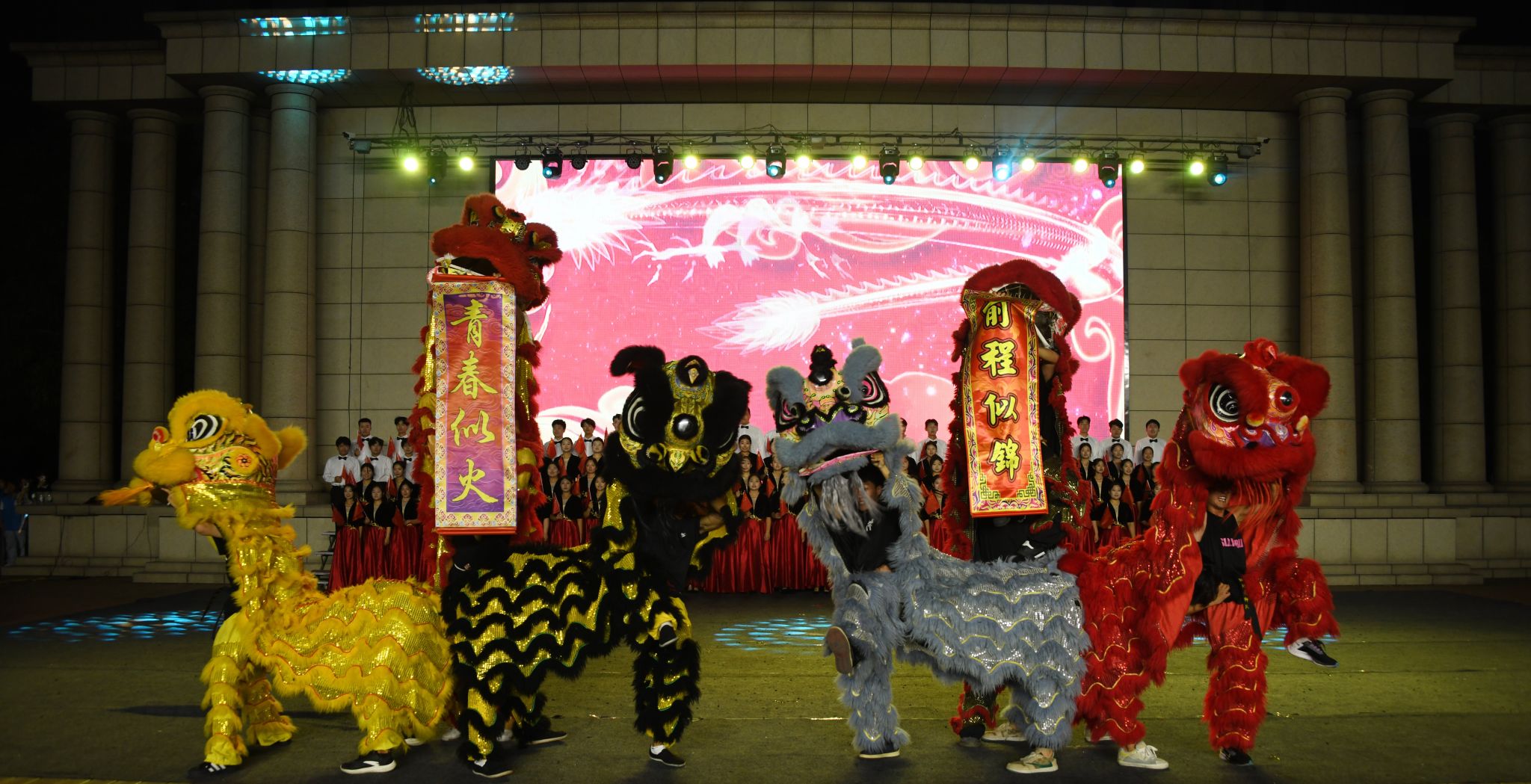 以深蓝夜空为画布,以绚丽灯光为画笔,在舞狮社团精彩绝伦的表演中,晚会大幕缓缓拉开。