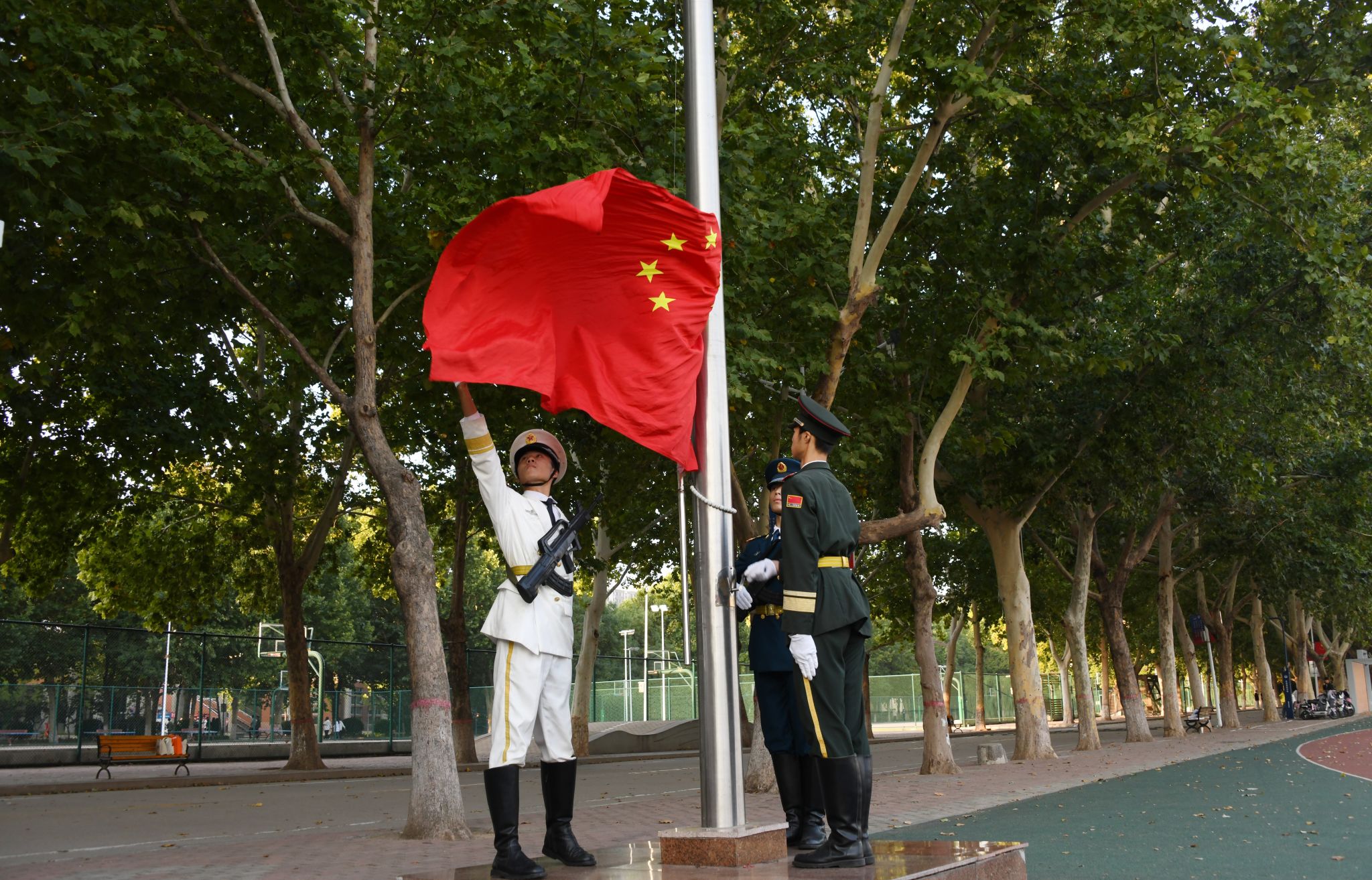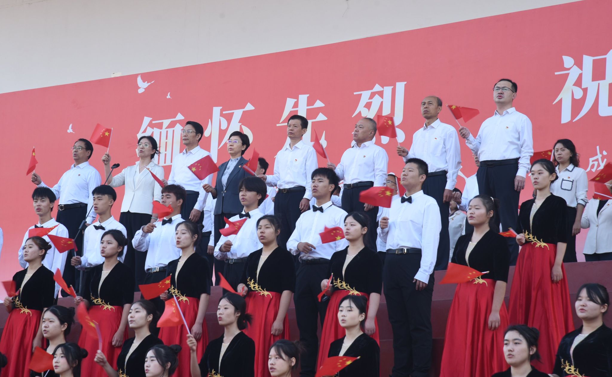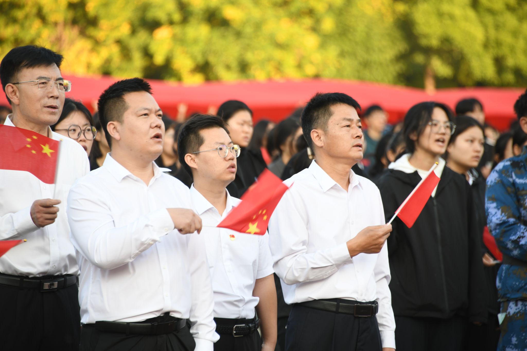 升旗仪式在全场共同唱响的《歌唱祖国》中圆满落下帷幕。同学们挥舞手中的五星红旗,共同祝愿国家繁荣昌盛,人民幸福安康。