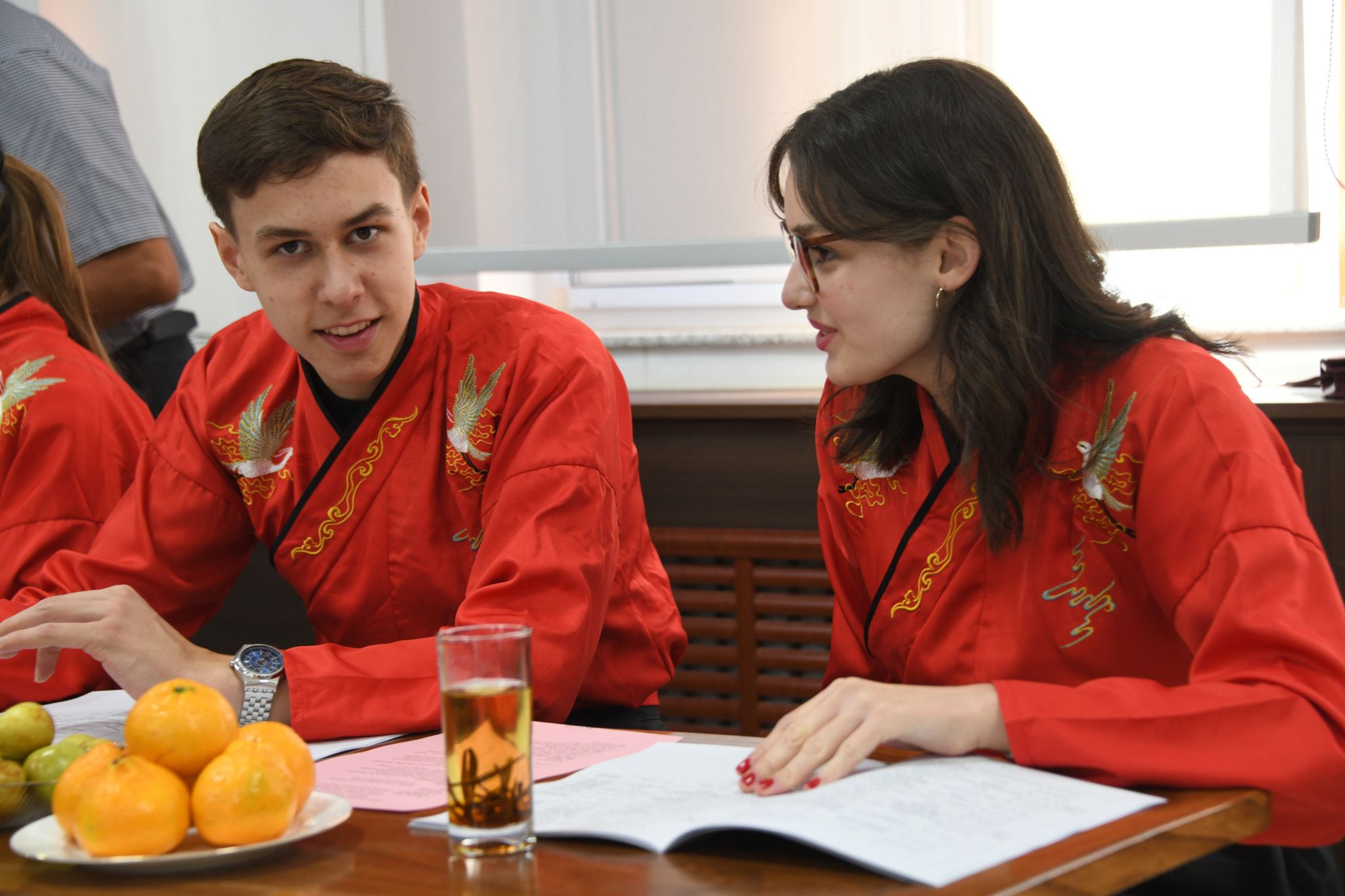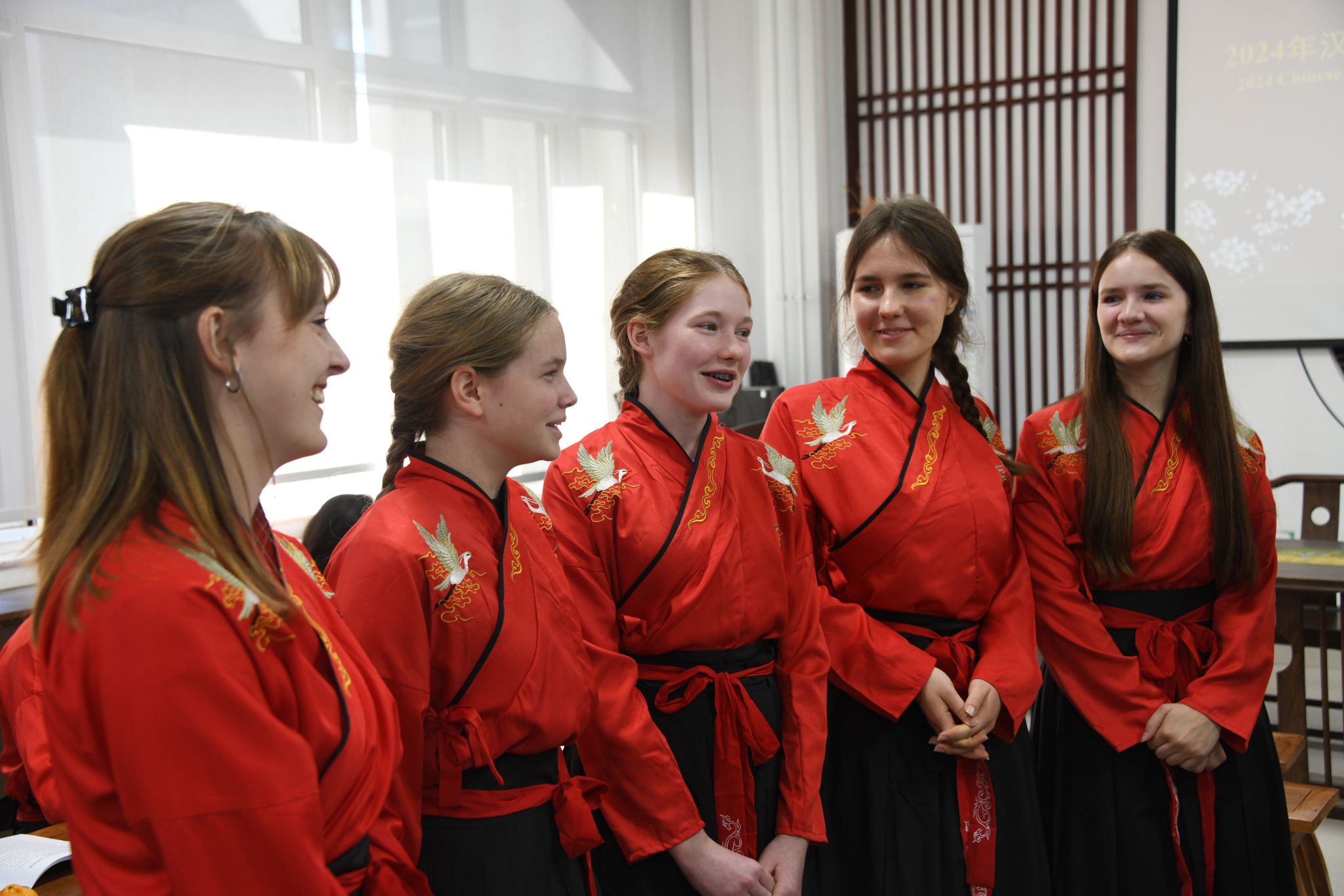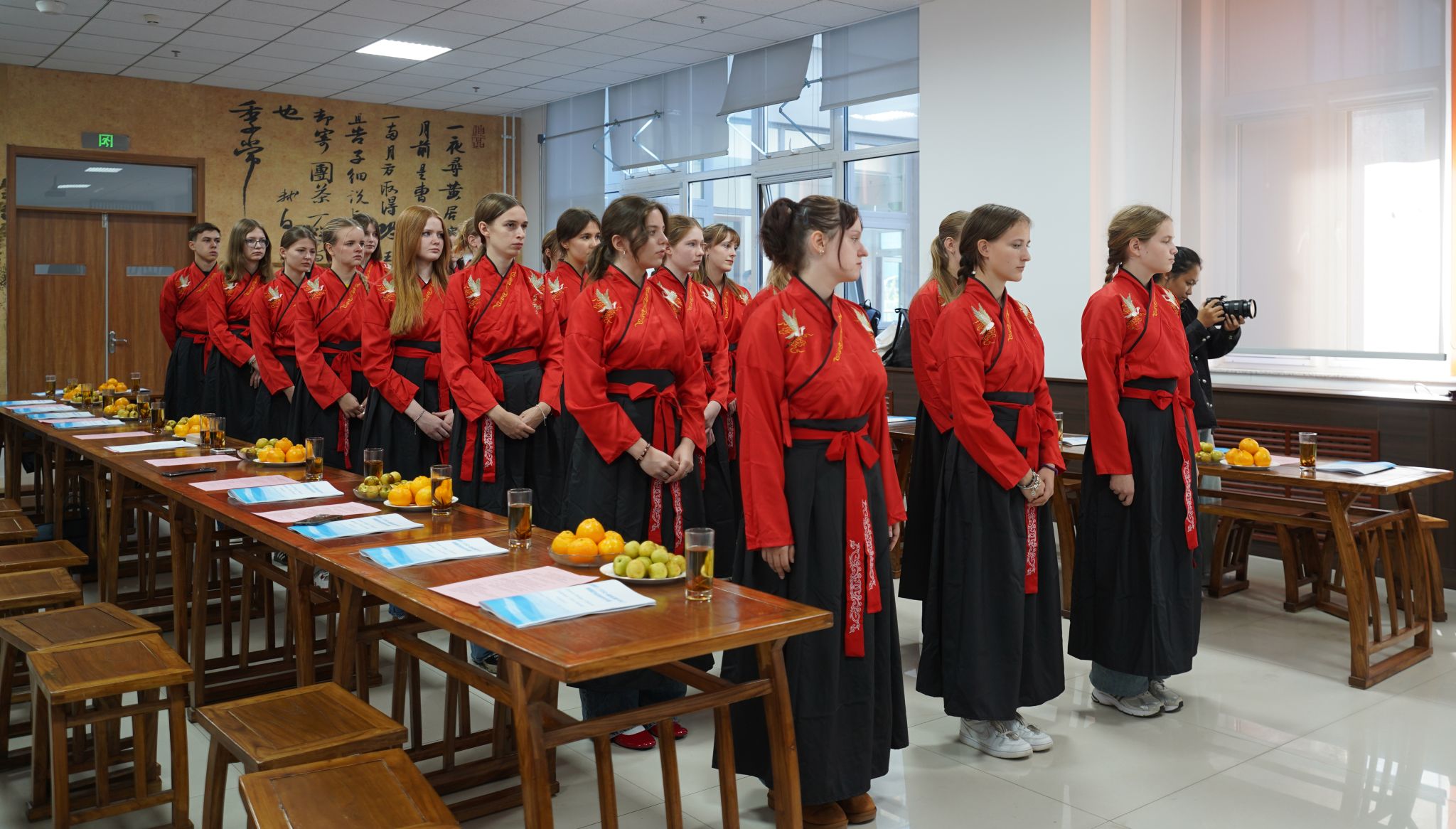 “拜师礼”仪式上,24名德国中学生身穿“汉服”,向他们在中国的老师们躬身行礼,体验中华传统文化的魅力。