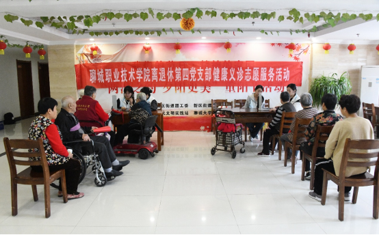 重阳节来临之际,聊城职业技术学院离退休第四党支部开展“九九重阳节 浓浓敬老情”健康义诊志愿服务活动,为老年人送上节日的祝福和关爱。