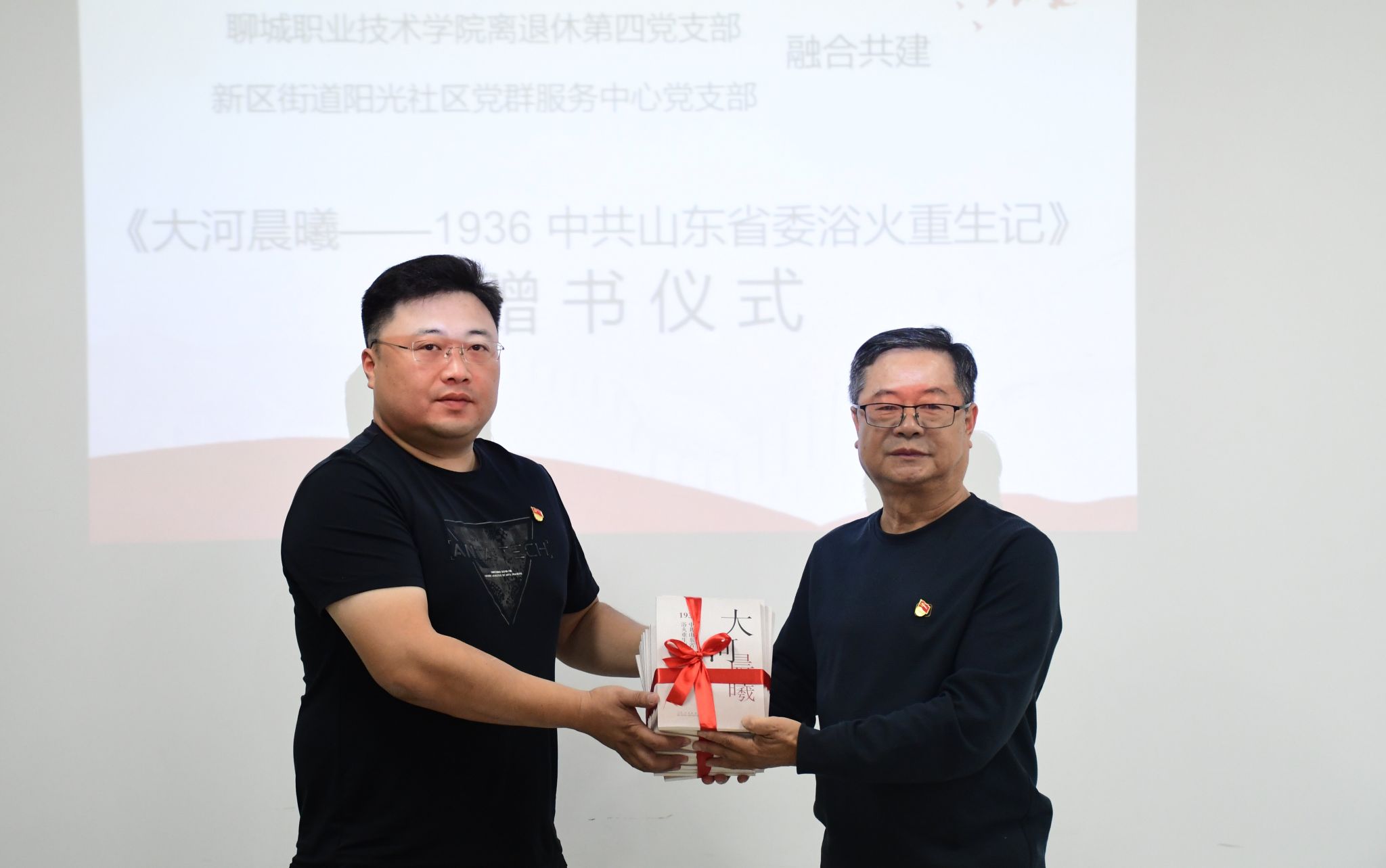 活动中,高杉向社区党支部赠送了由他本人创作的长篇报告文学《大河晨曦——1936 中共山东省委浴火重生记》,并分享了创作灵感和详细内容。双方党支部书记分别介绍了支部的组织构架和近期重要活动开展情况,促进了资源共建共享,党建工作互融互补,校社服务联动互助。