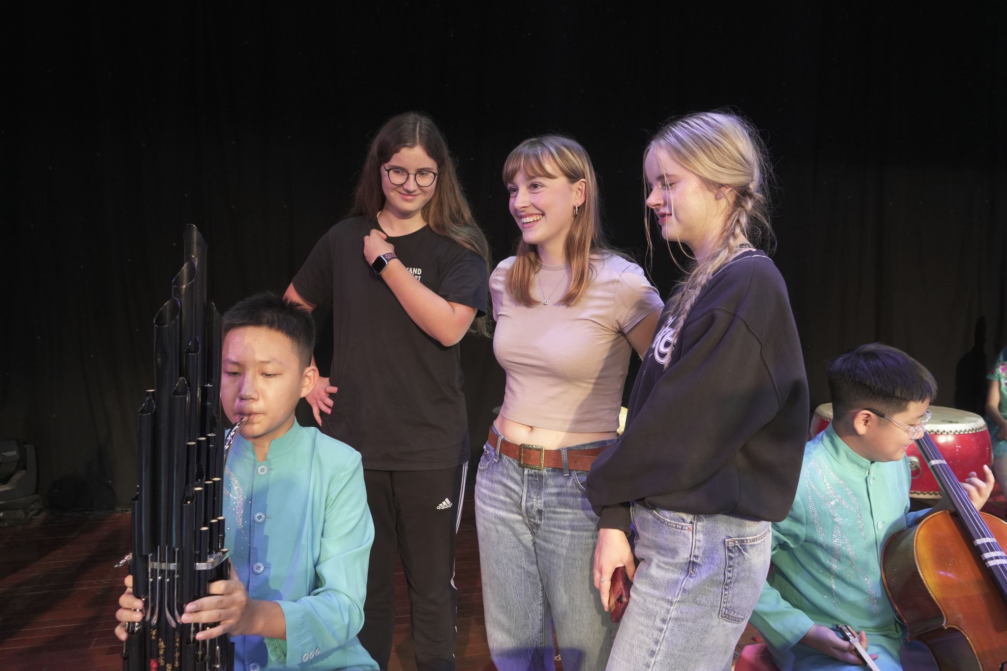 中德学生交流会上,学员们相互分享了成长经历与亲身感受。击鼓传花、绕口令、T台秀等趣味活动拉进了彼此距离,跨越语言的交流、文化的分享与思维的碰撞,为德国学生的文化之旅增添了浓墨重彩。