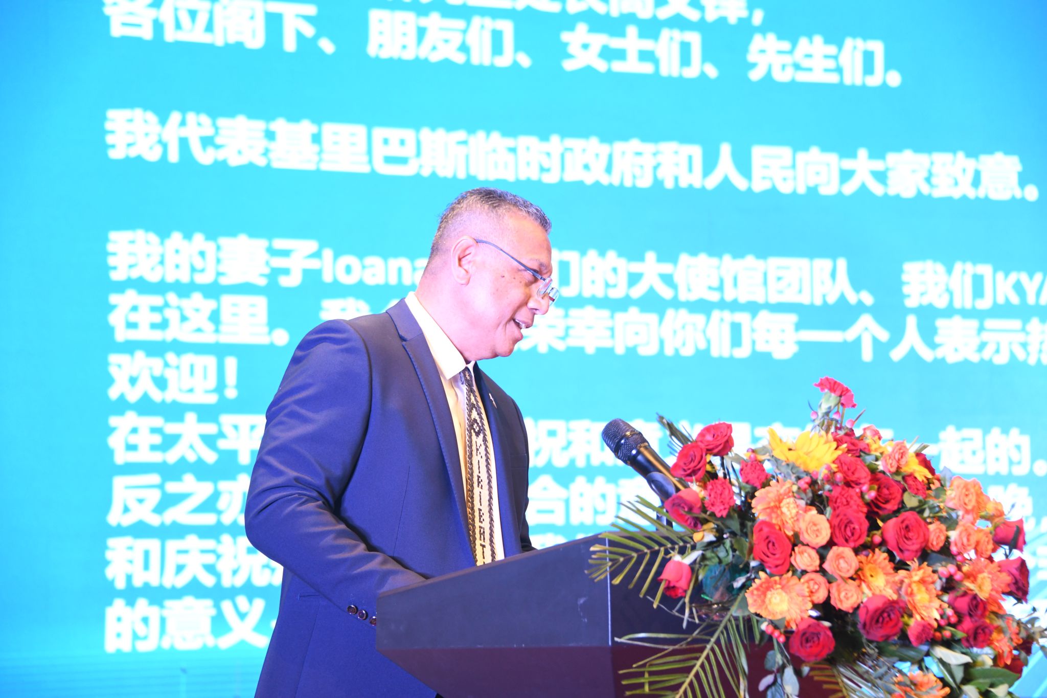 基里巴斯驻华大使对嘉宾的到来表示热烈和衷心的欢迎。他表示,大家共同庆祝中基建交5周年、聊城市与比休岛友好城市2周年这两个重要时刻,具有深刻的意义。他希望大家要紧密团结在一起,系牢共同发展的纽带。