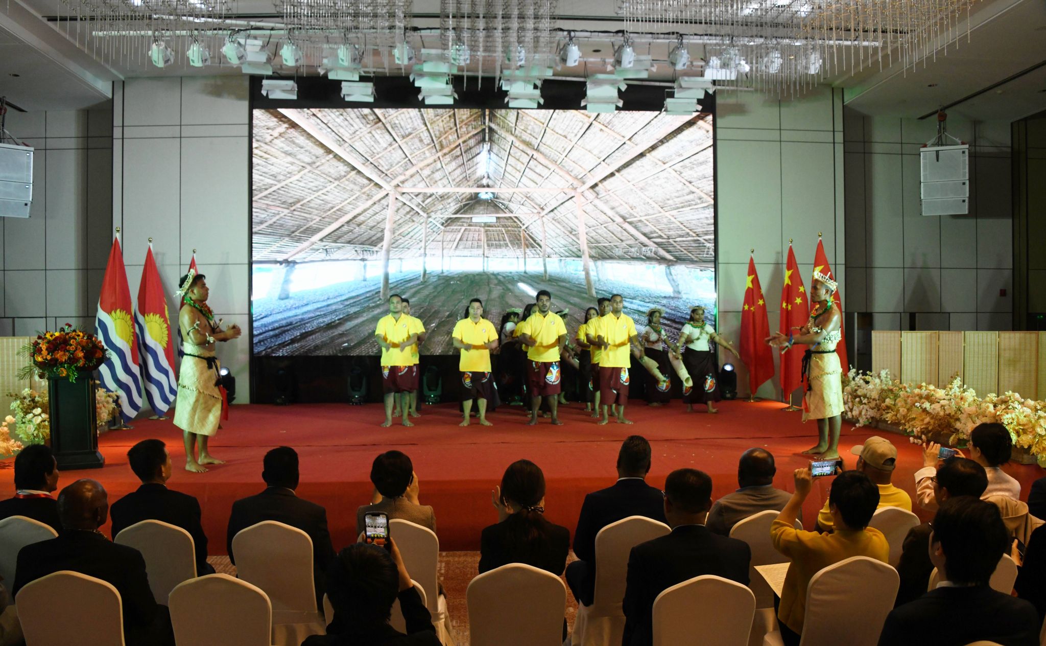文艺演出环节,我校学生表演了充满东方韵味的传统舞蹈《茉莉花》、热情洋溢的歌曲《相亲相爱》及活力四射的啦啦操。基里巴斯青年则表演了三种极具民族特色的歌舞与合唱,他们有的席地而坐,用木板、木箱等乐器打着节拍,有的合着节奏跳起灵活又充满力量的舞蹈,无伴奏合唱极具表演力和感染力,现场的观众融入在浓浓的异国风情之中。