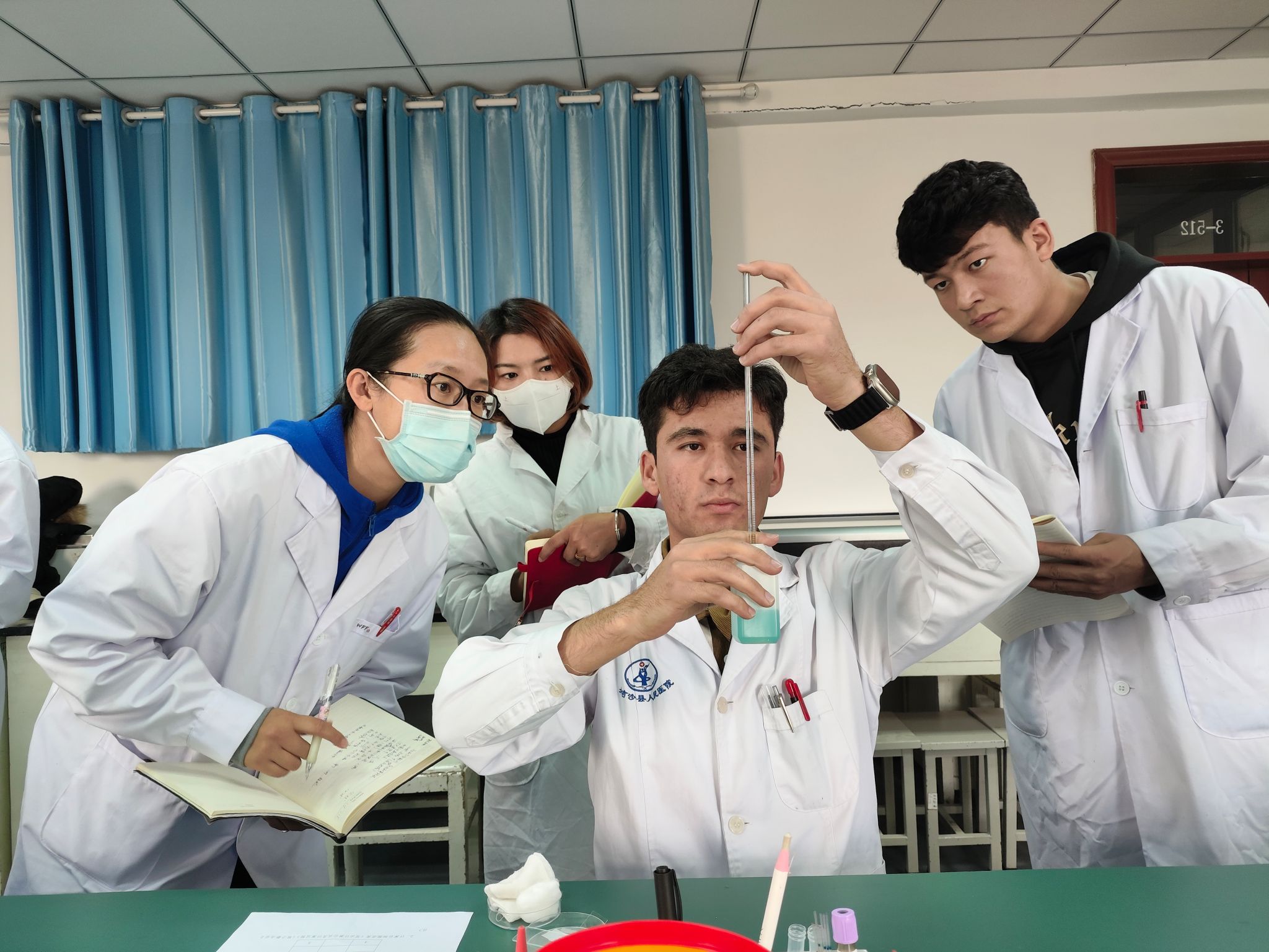 为实现以赛促教、以赛促学,她积极带领教师学生组织、参加各类比赛。指导年轻老师首次参加全国行指委教师组职业技能竞赛双双获奖;带领团队赴新疆医科大学参加大学生技能竞赛(检验技术赛道本专科组)获得自治区技能大赛团体第二名,取得国赛参赛资格……值得一提的是,她指导的学生麦尔巴哈因在竞赛中进入国赛加了10分,成功专升本进入新疆最好的医科大学——新疆医科大学,成为喀什职业技术学院检验专业历史上第一个专升本的学生。