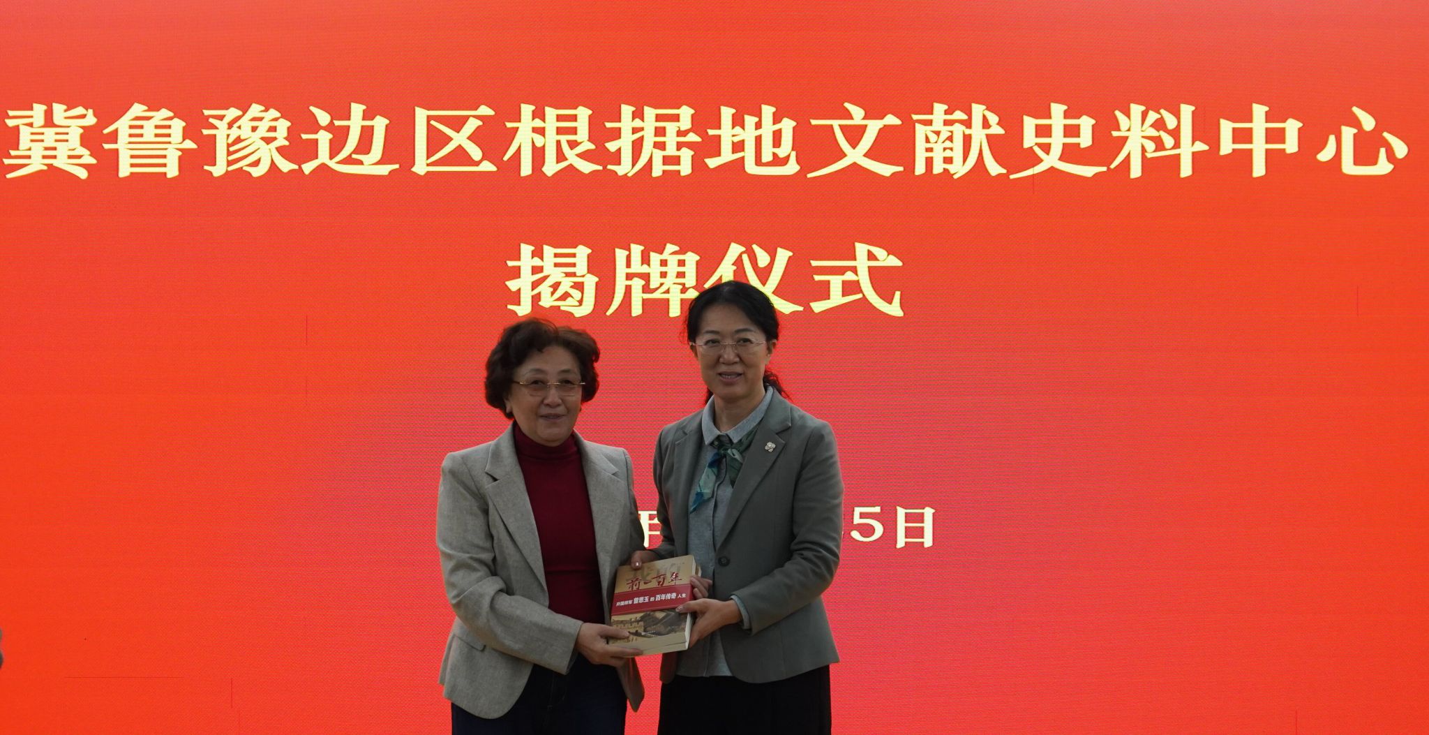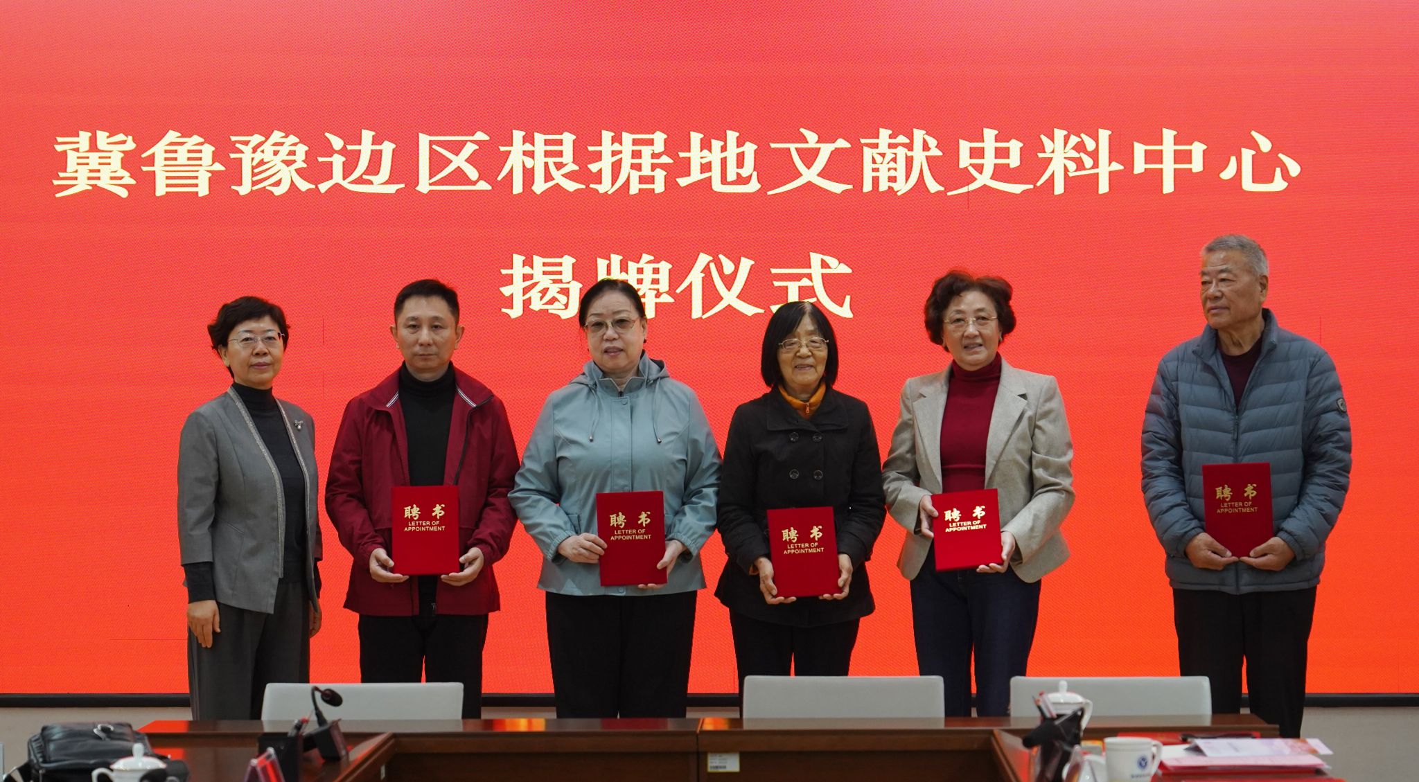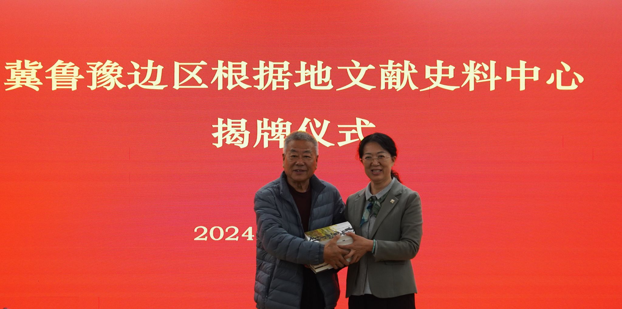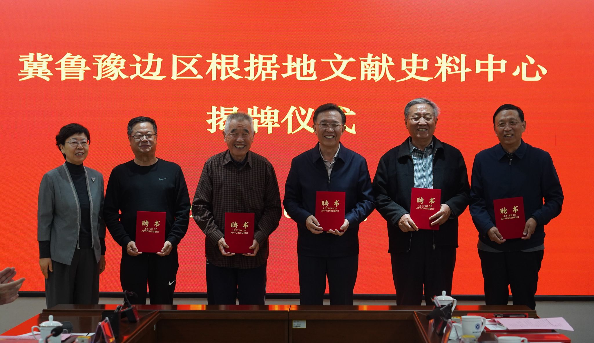 随后,曾丽、孙志勇、靳凤莲代表三方共同签订合作共建协议。曾丽、荣向林为冀鲁豫边区根据地文献史料中心揭牌。