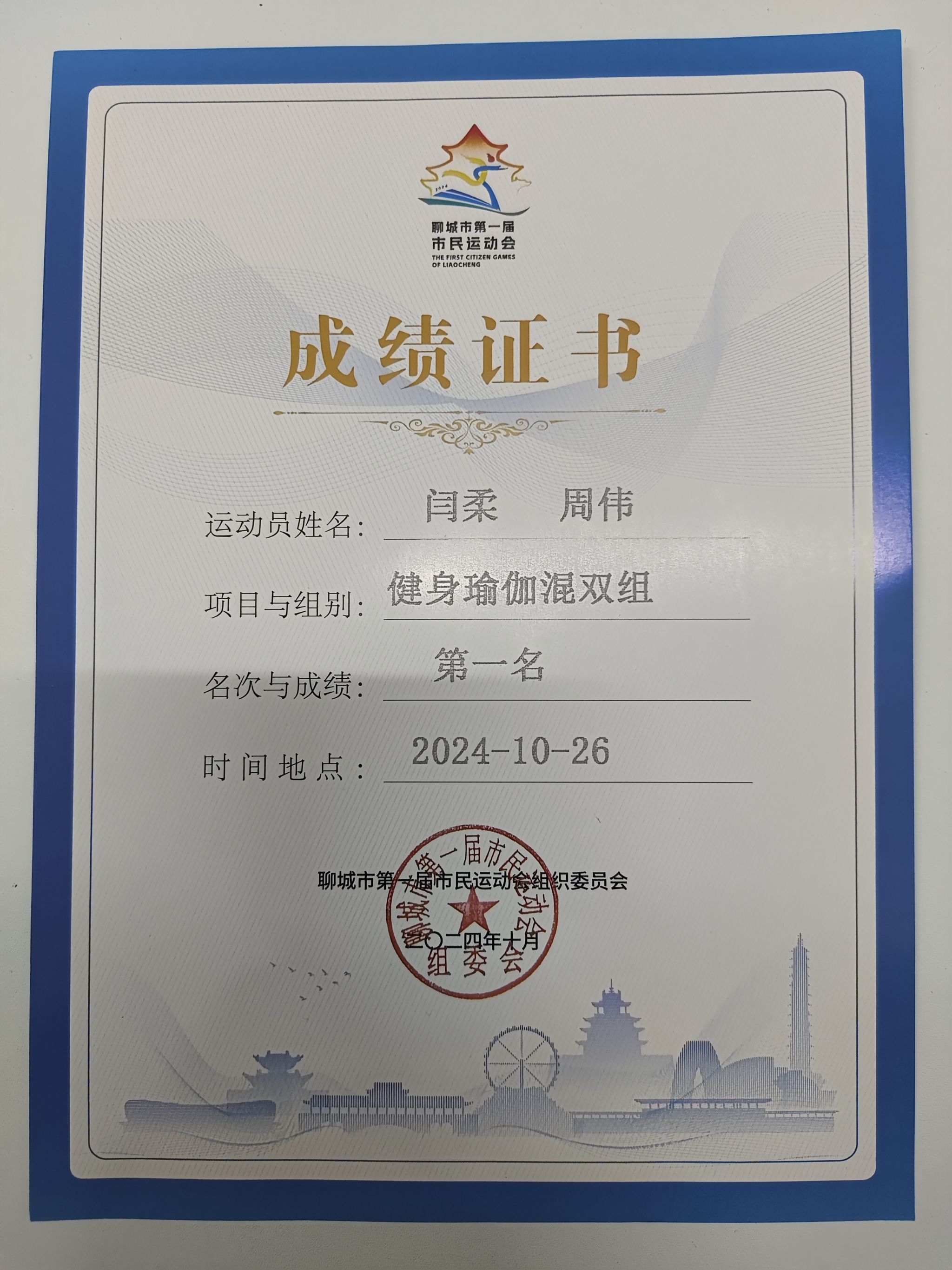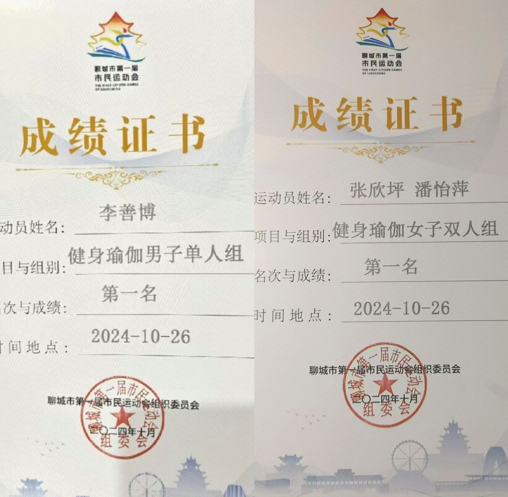 10月26日,由中共聊城市委主办,聊城市教育和体育局、聊城市工会承办的首届聊城市市民运动会健身瑜伽比赛圆满落幕。聊城职业技术学院瑜伽队在此次比赛中表现优异,其中混双比赛夺得第一名,男单、女双两项比赛更是包揽前三名。此外,我校队伍还在本次比赛中获得了团体二等奖、团体三等奖及优秀组织奖等多项集体奖项。