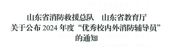 近日,山东省消防救援总队山东省教育厅发布《关于公布2024年度“优秀校内外消防辅导员”的通知》(鲁消〔2024〕180号),我校周涛老师荣获2024年度“优秀校内外消防辅导员”荣誉称号。