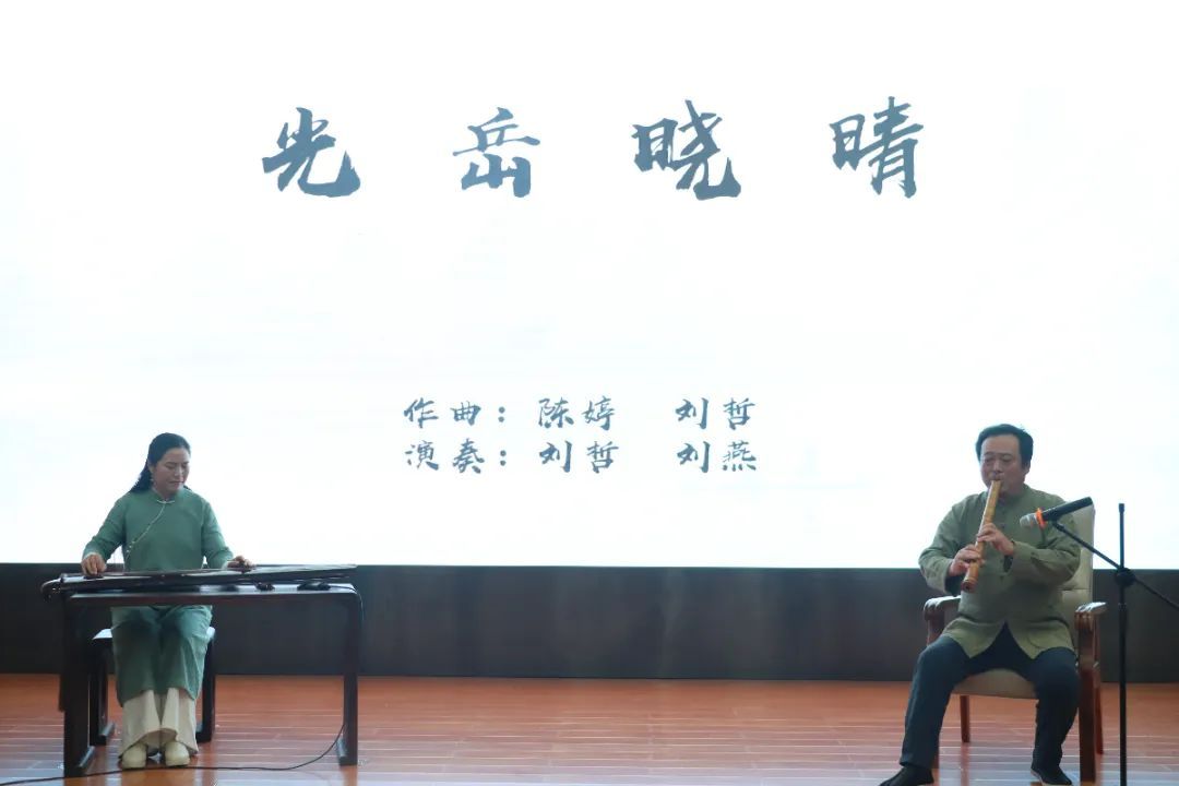 刘哲、刘燕两位老师作为美育导师分别为同学们介绍了尺八、古琴的厚重历史底蕴,并为在场师生们现场演奏古琴与尺八穿越时空的旋律,让大家体会到了中华文化的博大精深,领略了非遗之美的魅力,带来了一场精神的滋养和文化熏陶的传统音乐盛宴。