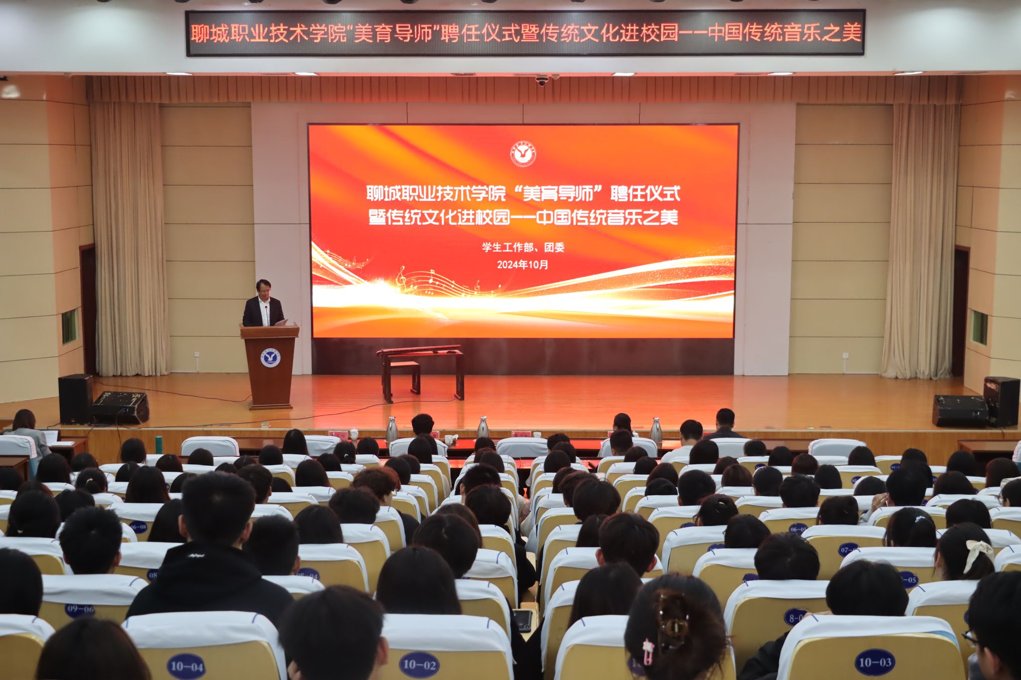 为深入学习党的二十届三中全会精神,深入贯彻习近平文化思想,落实关于全面加强和改进新时代学校美育工作的意见,推进“美育浸润行动”。10月31日,聊城职业技术学院举办“美育导师”聘任仪式暨“传统文化进校园—中国传统音乐之美”主题活动。聊城大学继续教育学院党总支书记、中国民族管弦乐学会会员、山东艺术学院音乐学院特聘尺八指导刘哲,聊城市第十四届政协委员、聊城市古琴学会会长刘燕来校弘扬中国传统音乐的艺术魅力。学校党委委员、统战部部长崔爱民出席活动。