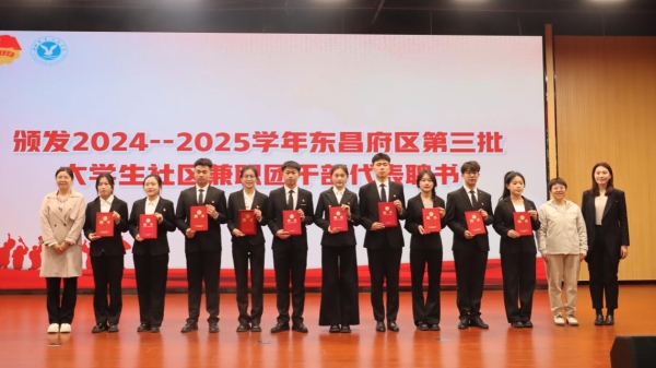 活动上,为“2023--2024学年优秀社区兼职团干部”和“2024--2025学年东昌府区第三批大学生社区兼职团干部代表”颁发荣誉证书,各学院围绕暑期“三下乡”、“百万大学生进社区”优秀社会实践项目进行了展示交流。