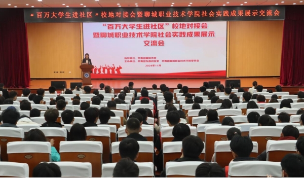为全面贯彻落实共青团山东省委、山东省教育厅联合发布的《关于开展“百万大学生进社区”社会实践的工作方案》,充分展示大学生社会实践风采,检验社会实践成果,进一步推动“百万大学生进社区”走深走实。11月7日,聊城职业技术学院举行“‘百万大学生进社区’校地对接会暨聊城职业技术学院社会实践成果展示交流会”。共青团东昌府区委书记齐亚芳、相关部门负责同志,校团委、各二级学院团总支负责人及师生代表参加活动。