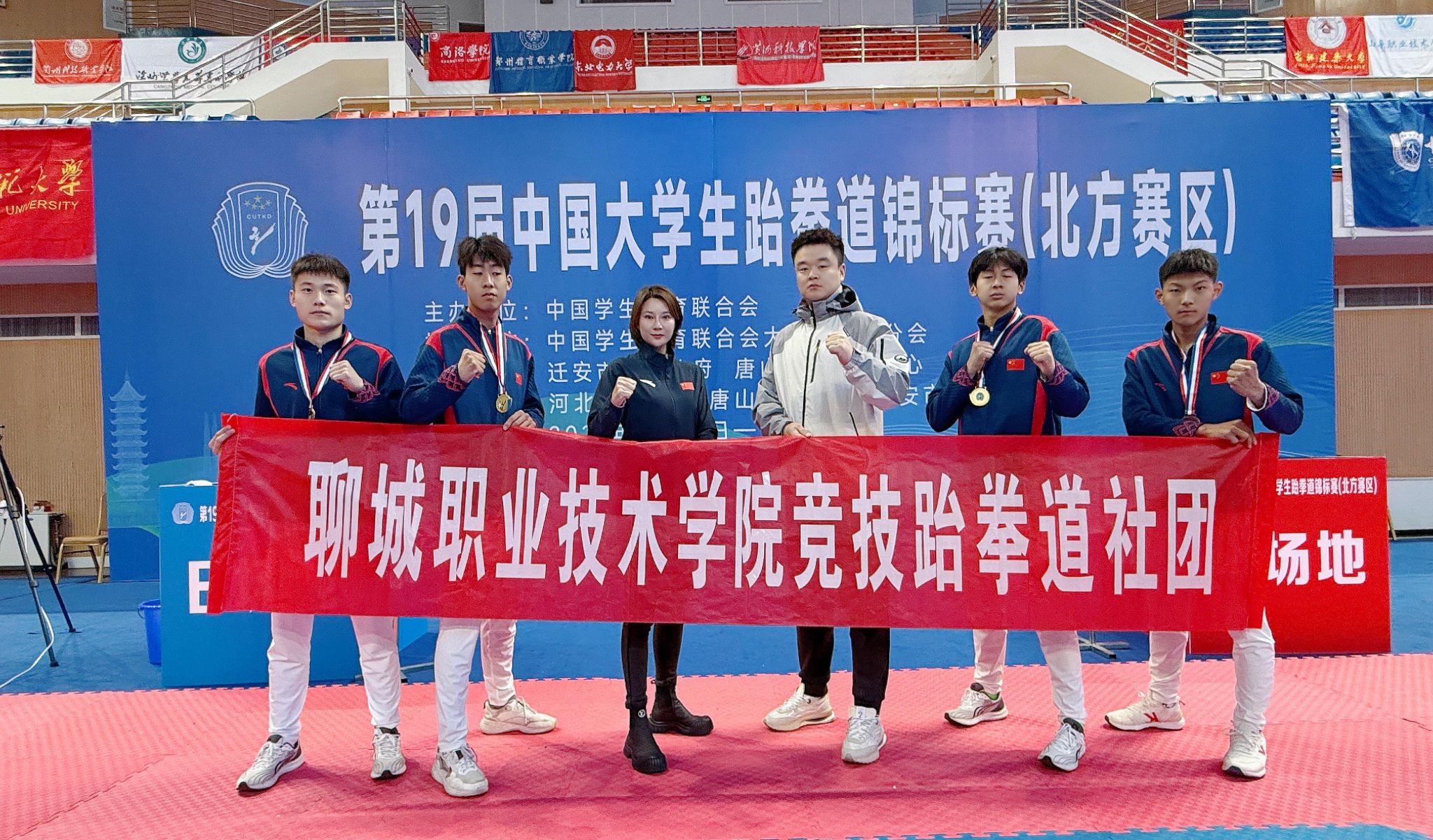 11月13日-19日,由中国大学生体育协会主办,中国大学生体育协会跆拳道分会执行,迁安市人民政府、唐山九江体育中心承办的第19届中国大学生跆拳道锦标赛(北方赛区)在河北省迁安市体育馆顺利举行。聊城职业技术学院竞技跆拳道社团在比赛中顽强拼搏,经过激烈角逐,最终获得2金2铜的优异成绩,实现了我校在该赛事的新突破。