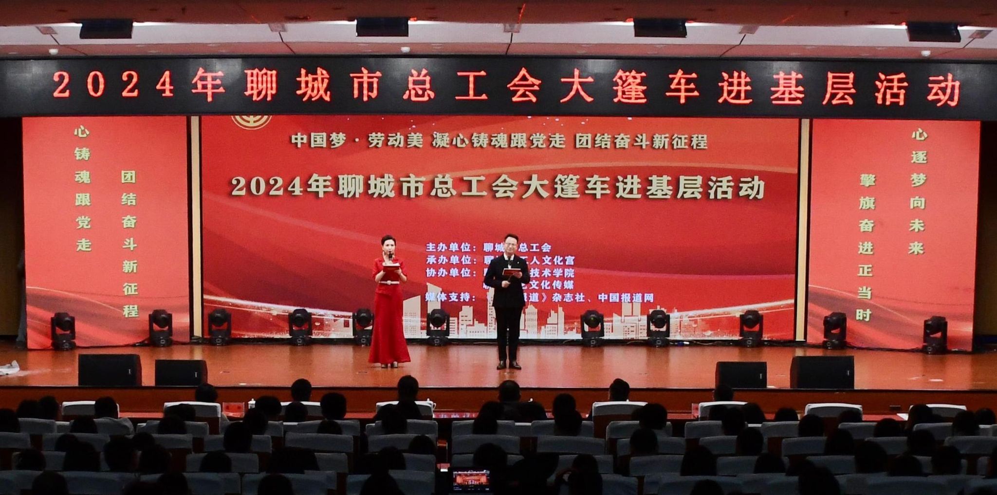 11月20日,聊城市总工会大篷车进基层活动首场文艺演出在聊城职业技术学院举办。市总工会党组成员、副主席赵卫国,市总工会宣教部部长储鹏,聊城市工人文化宫主任孙东,聊城职院党委委员、副院长、工会主席刘雪巍,工会副主席王增朝及师生代表500余人观看了演出。