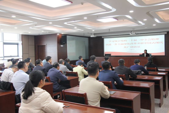11月20日,山东省高校思政课教学名师工作室主持人、聊城职业技术学院马克思主义学院教授高瑞鹏应邀为昌润投资控股集团有限公司的党员干部讲授题为《学习领会党的二十届三中全会精神——以进一步全面深化改革开辟中国式现代化广阔前景》的党课。