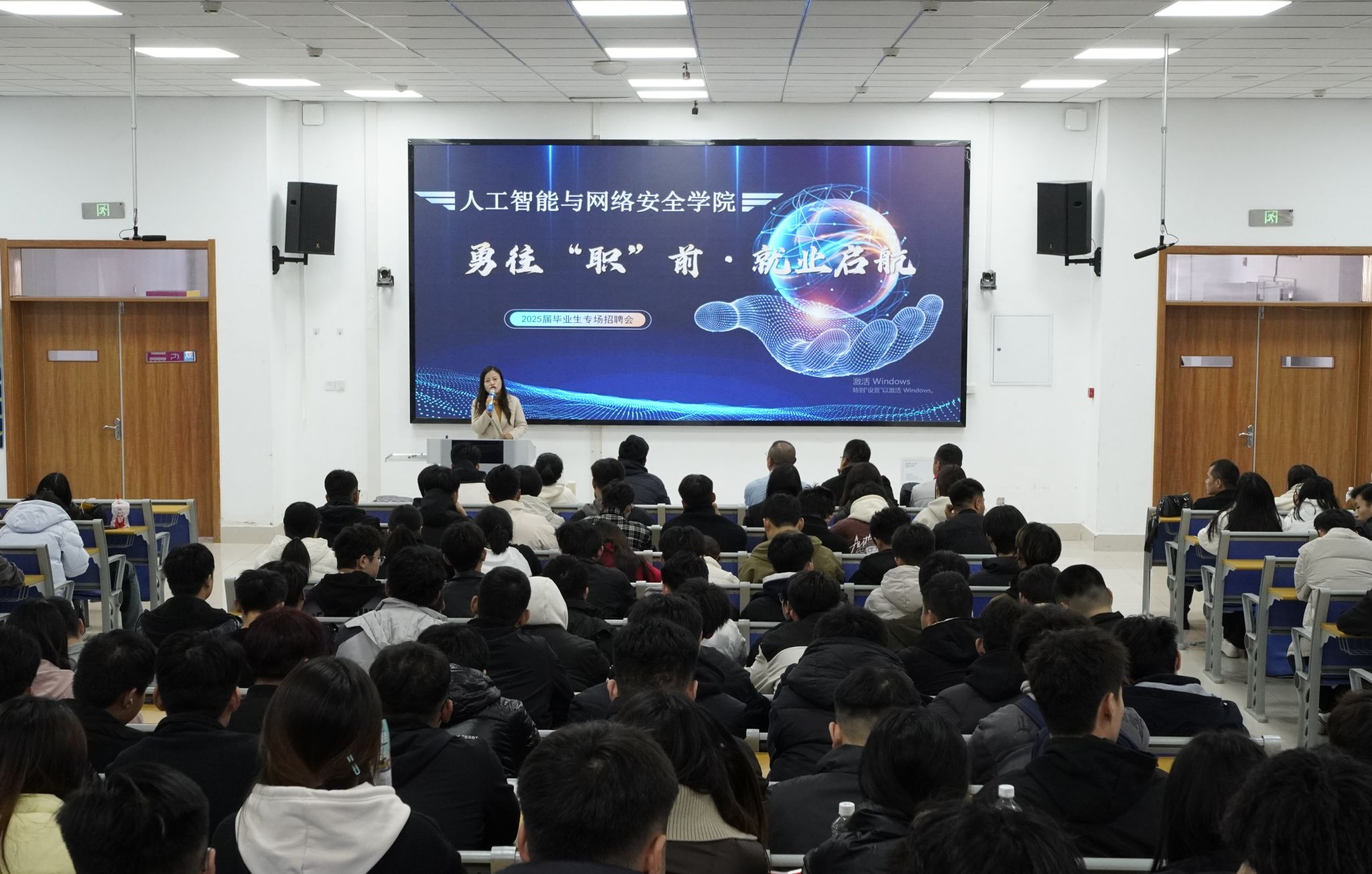 企业在多功能报告厅展开精彩宣讲,详细介绍了公司概况、企业文化、岗位需求以及福利待遇等信息,让同学们对企业有更深入的了解。为企业与学生之间搭建了高效的沟通桥梁,也为2025届毕业生开启了通向就业之旅的大门。