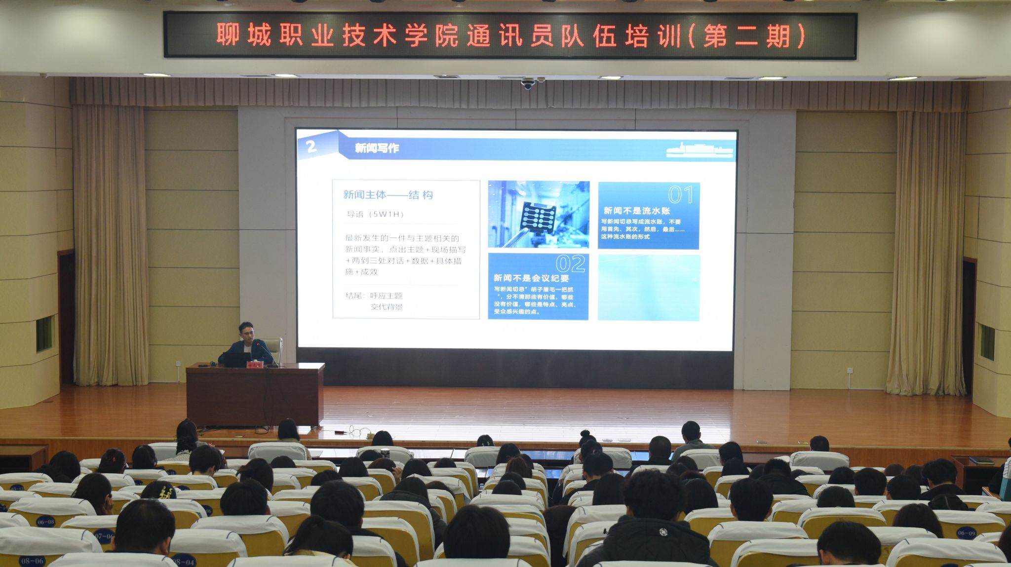 2024年11月8日是第二十五个中国记者节。当天下午,聊城职业技术学院南校区第一报告厅内座无虚席。来自全校各处室院部的通讯员、学生宣传骨干及校园融媒体中心的大学生记者们共同聆听了一场有趣、有料又“干货满满”的新闻采编培训报告。