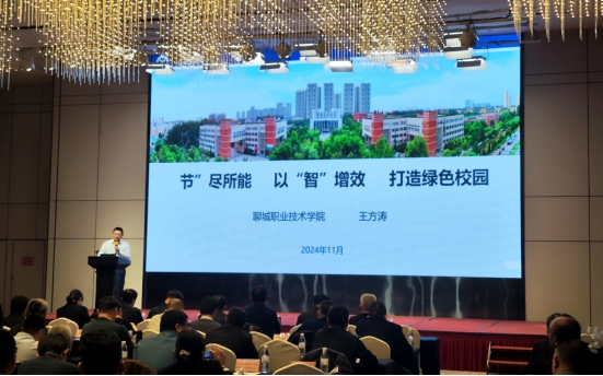 12月1日,山东省学校后勤协会能源管理分会2024年年会暨高校节约能源资源经验交流会在聊城召开。会上,聊城职业技术学院后勤处处长王方涛代表学校作了《“节”尽所能以“智”增效打造绿色校园》的发言,是全省唯一一所作典型发言的高职院校。
