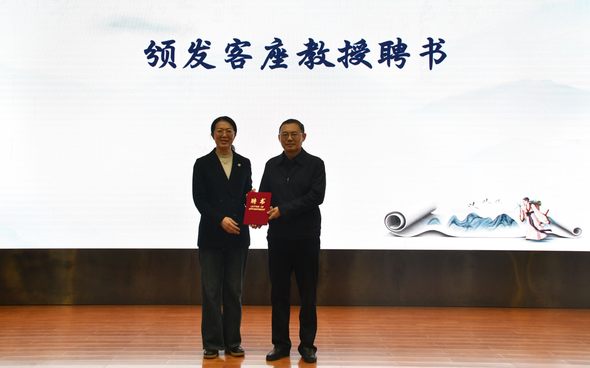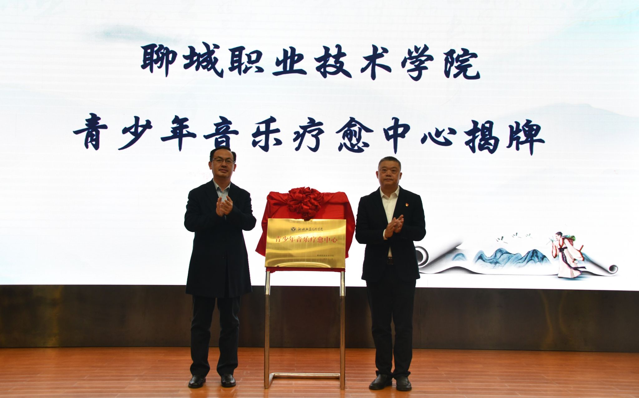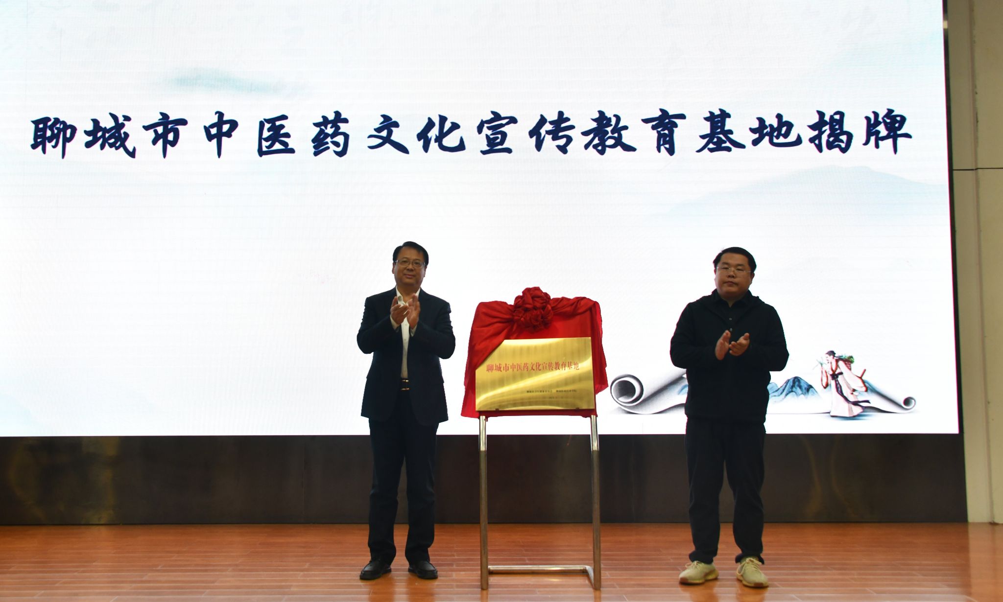 与会领导为青少年音乐疗愈中心、聊城市中医药文化宣传教育基地揭牌,为谷万里主任颁发客座教授聘书。