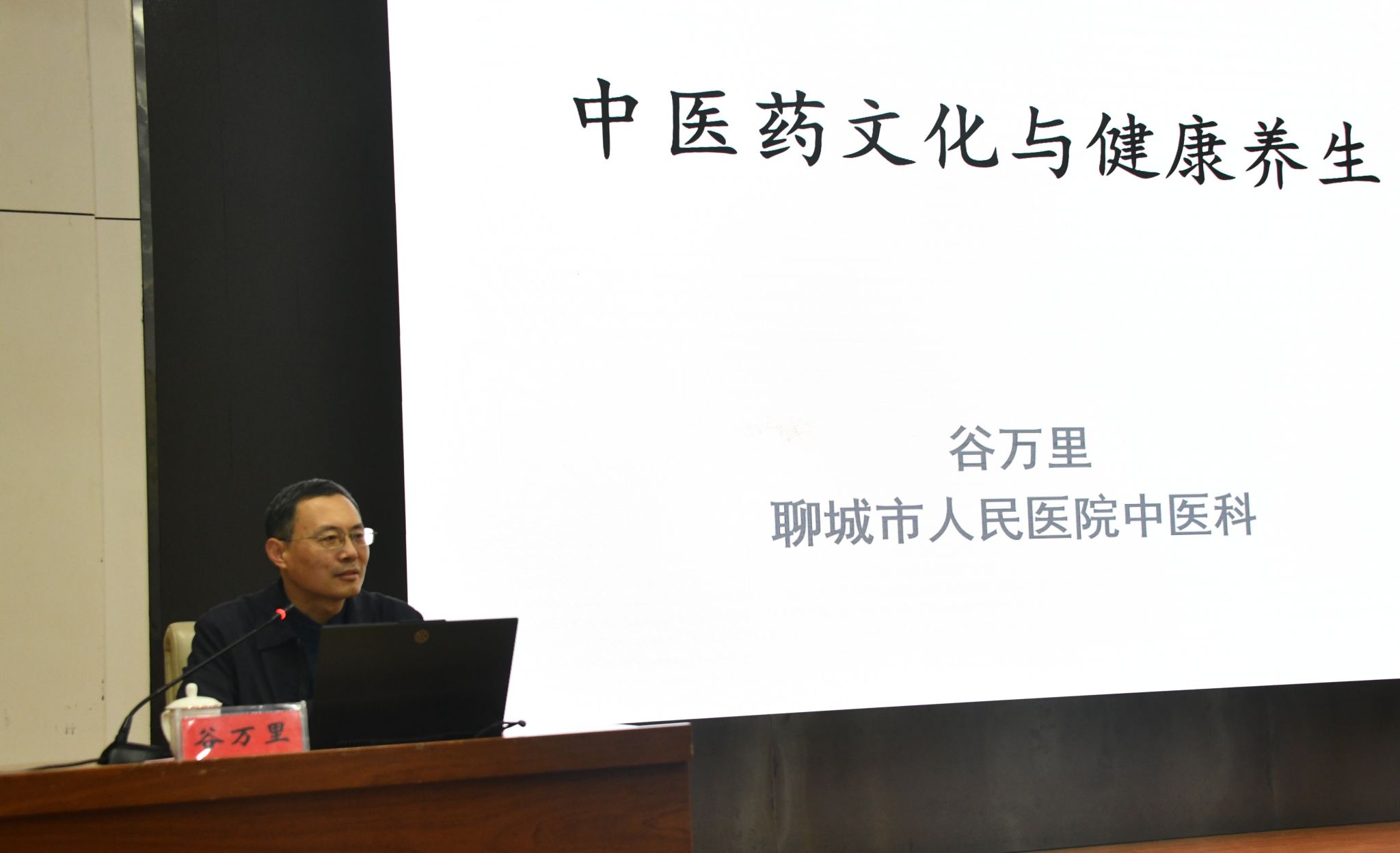 开幕式结束后,为落实聊城关心下一代工作委员会,聊城市教育体育局、聊城市卫生健康委员会等组织的中医药在聊城-中医药文化进校园活动,弘扬中医药文化,传承成无己精神,特邀聊城市人民医院中医科主任、成无己学术研究会会长谷万里做题为《中医药文化与健康养生》知识讲座。谷万里将中医药知识科普与中医药文化价值相结合,将中医药理论与中医药实践相结合,将中医药发展脉络与中医药当代价值相结合,有力地弘扬了中医文化,更好地彰显了中医文化魅力。