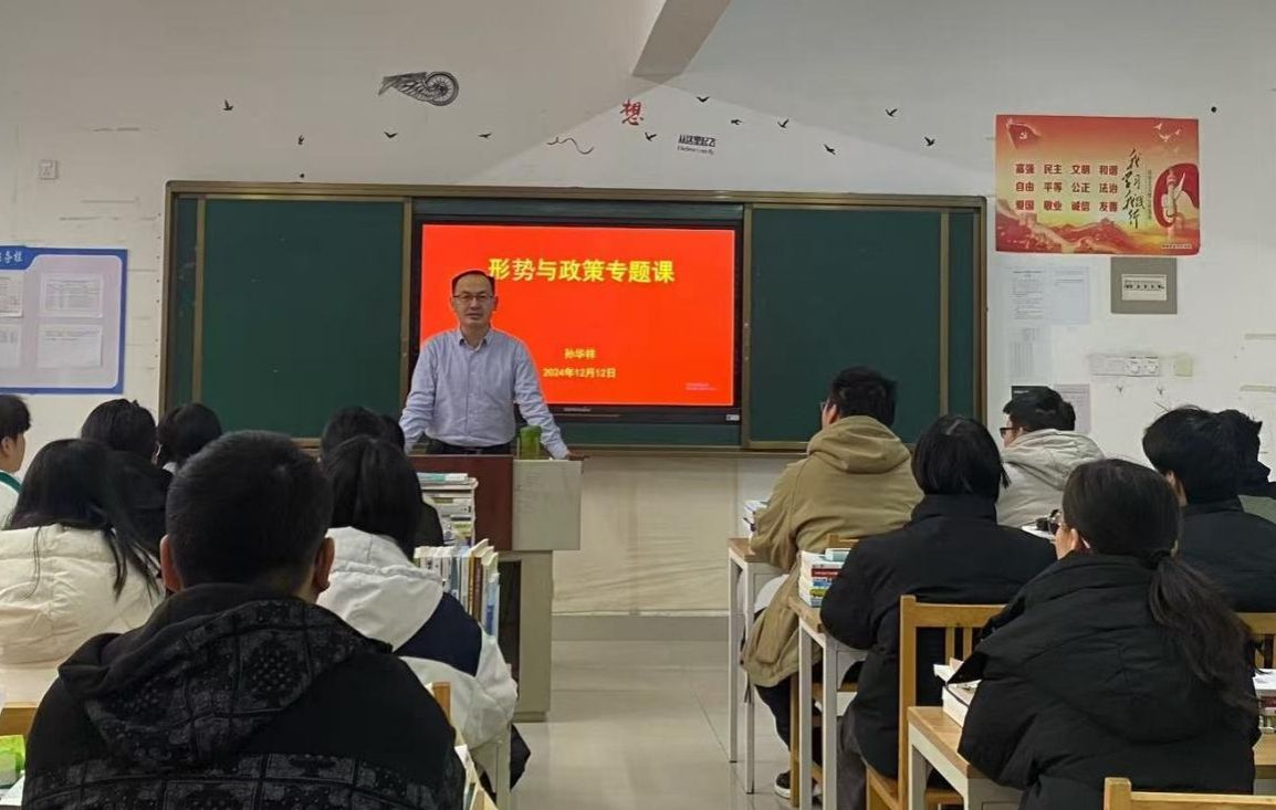 12月12日,党委委员、组织部部长孙华祥以《坚定技能报国信念,青春为中国式现代化挺膺担当》为题,为医药学院师生讲授了一堂精彩生动的形势与政策课。