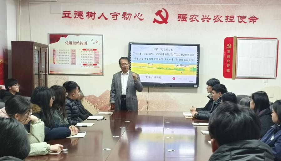 12月19日,党委委员、统战部部长崔爱民以“学习运用‘千村示范、万村整治’工程经验,有力有效推进乡村全面振兴”为题,为智慧农业学院学生讲授了一堂生动而精彩的形势与政策课。
