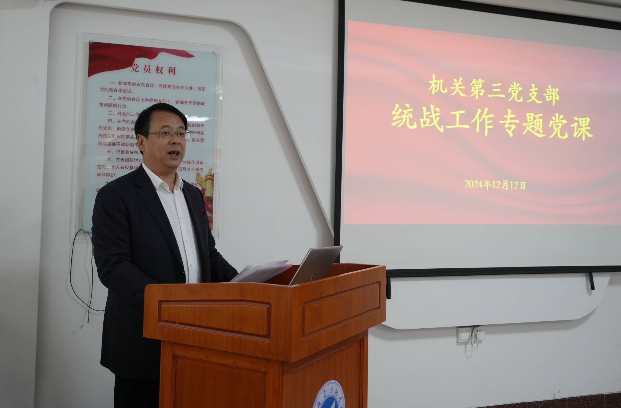 12月12日,党委委员、统战部部长崔爱民以“‘五大工程’构建‘同心聊职’品牌矩阵,打造大统战格局的聊职实践”为主题,为机关第三党支部党员讲授了专题党课。