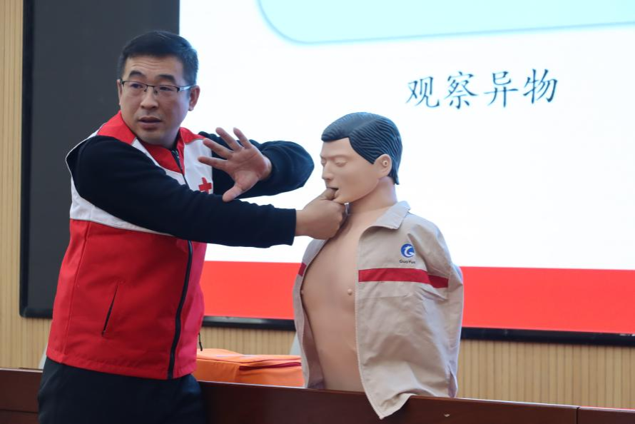 心肺复苏培训环节,专家从急救的“黄金4分钟”概念切入,详细阐述了心肺复苏(CPR)的重要性和步骤。现场教学演示环节,专家细致入微地讲解了从判断患者的反应和呼吸、呼叫求救到执行胸外按压的每一步流程,并进行了严谨的示范。