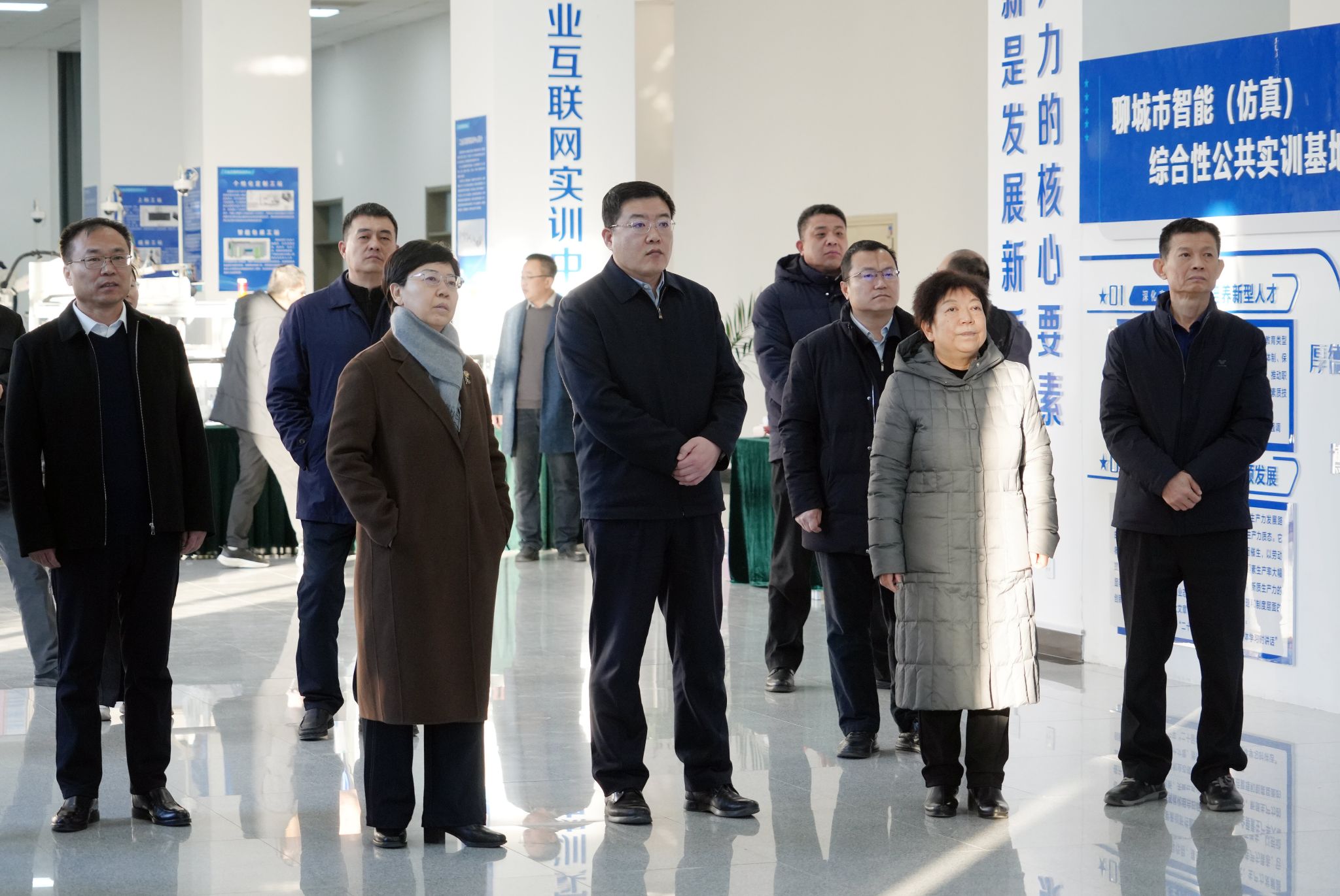 马军权首先考察了聊城市智能(仿真)综合性公共实训基地。座谈会上,马军权对聊城市职业教育目前可喜的发展态势感到高兴,对职教社成立十年来所取得的工作成就表示祝贺,对职业学校的统战工作表示肯定。他强调,刚刚闭幕的聊城市政府工作报告,多处体现了对职业教育的支持,我们要坚持政治引领、加强协调联动、政行校企的合作、校际的合作,为“六个新聊城”贡献职教力量。