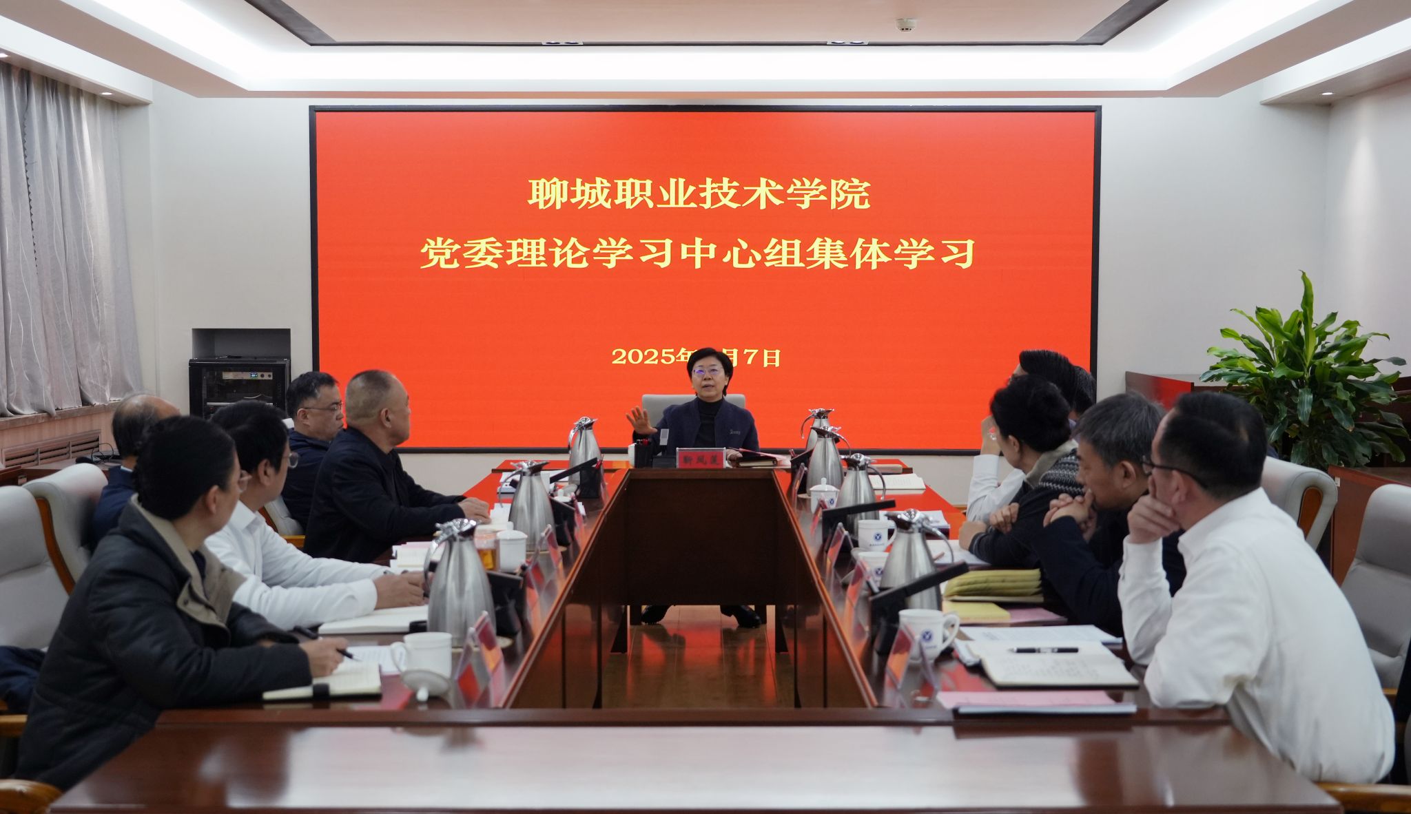 2月7日,聊城职业技术学院党委理论学习中心组(扩大)举行集体学习。旨在深入学习贯彻习近平新时代中国特色社会主义思想,传达并学习省市抓改革创新促高质量发展大会精神,为学校发展注入新的动力,吹响全力推进改革创新与高质量发展的集结号。会议由党委书记靳凤莲主持,党委副书记、院长徐龙海及党委领导班子成员参加会议。