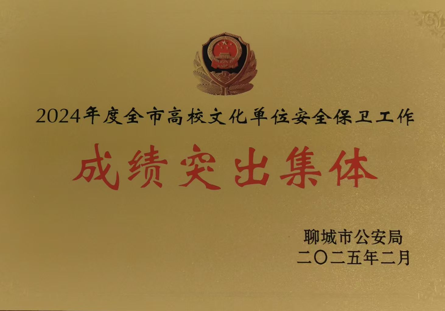 近日,聊城市公安局下发《关于对全市高校文化单位安全保卫工作成绩突出集体和个人予以表扬的通报》,聊城职业技术学院保卫处荣获“2024年度全市高校文化单位安全保卫成绩突出集体”。