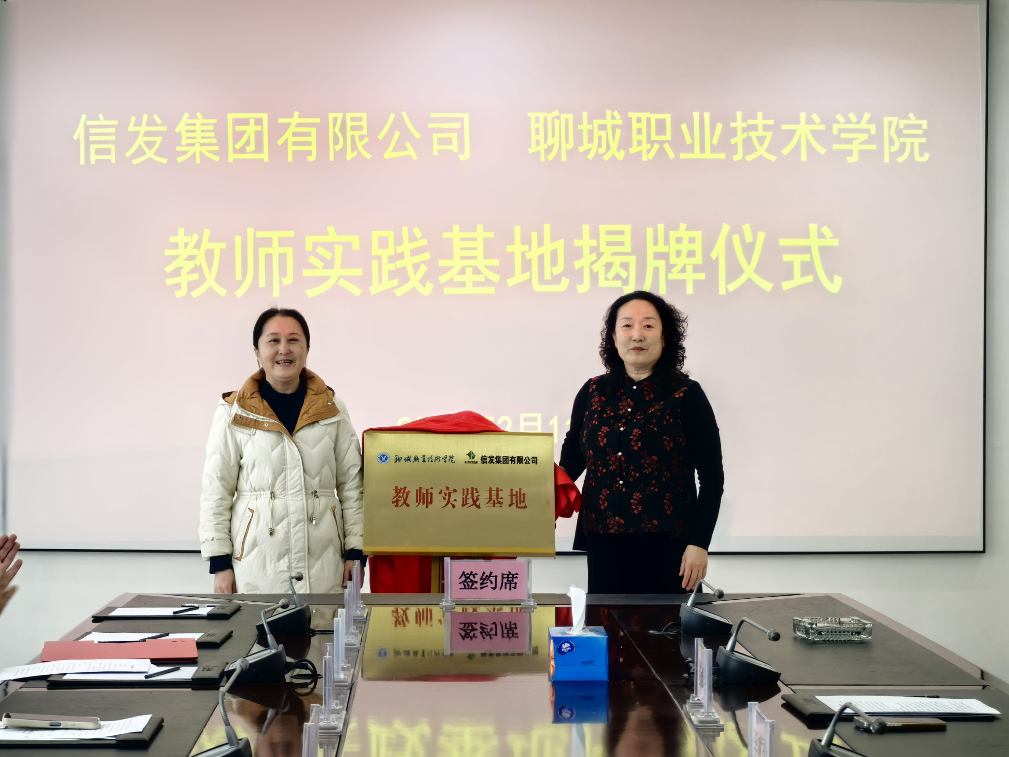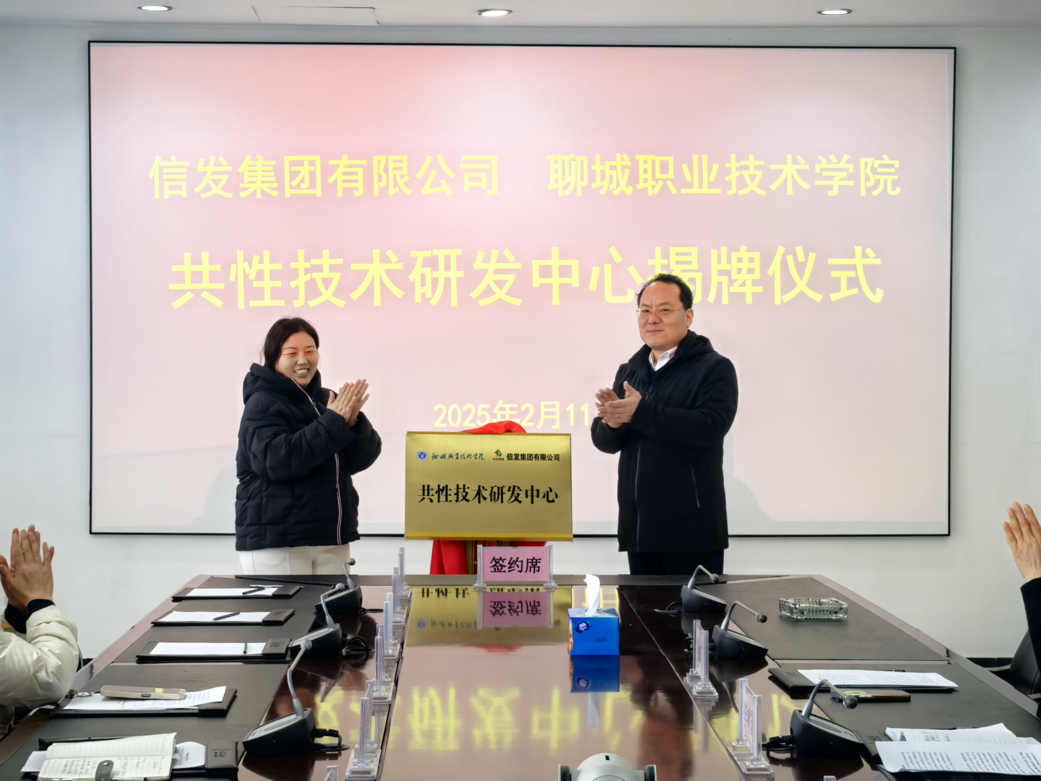 活动第二阶段,卢萍与李树国代表双方共同签署了校企合作协议,校企双方代表共同为“联合创新中心”“共性技术研发中心”“教师实践基地”“大学生实习就业基地”揭牌,标志着校企双方合作迈向新的高度。