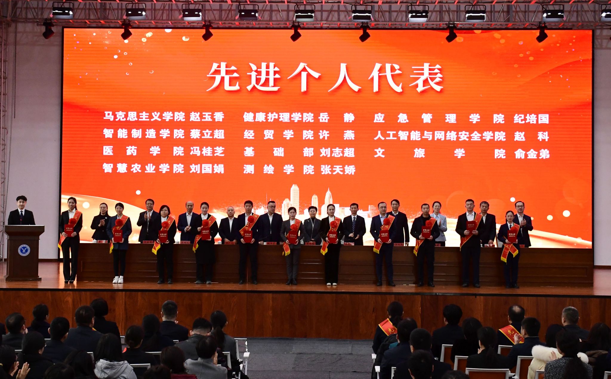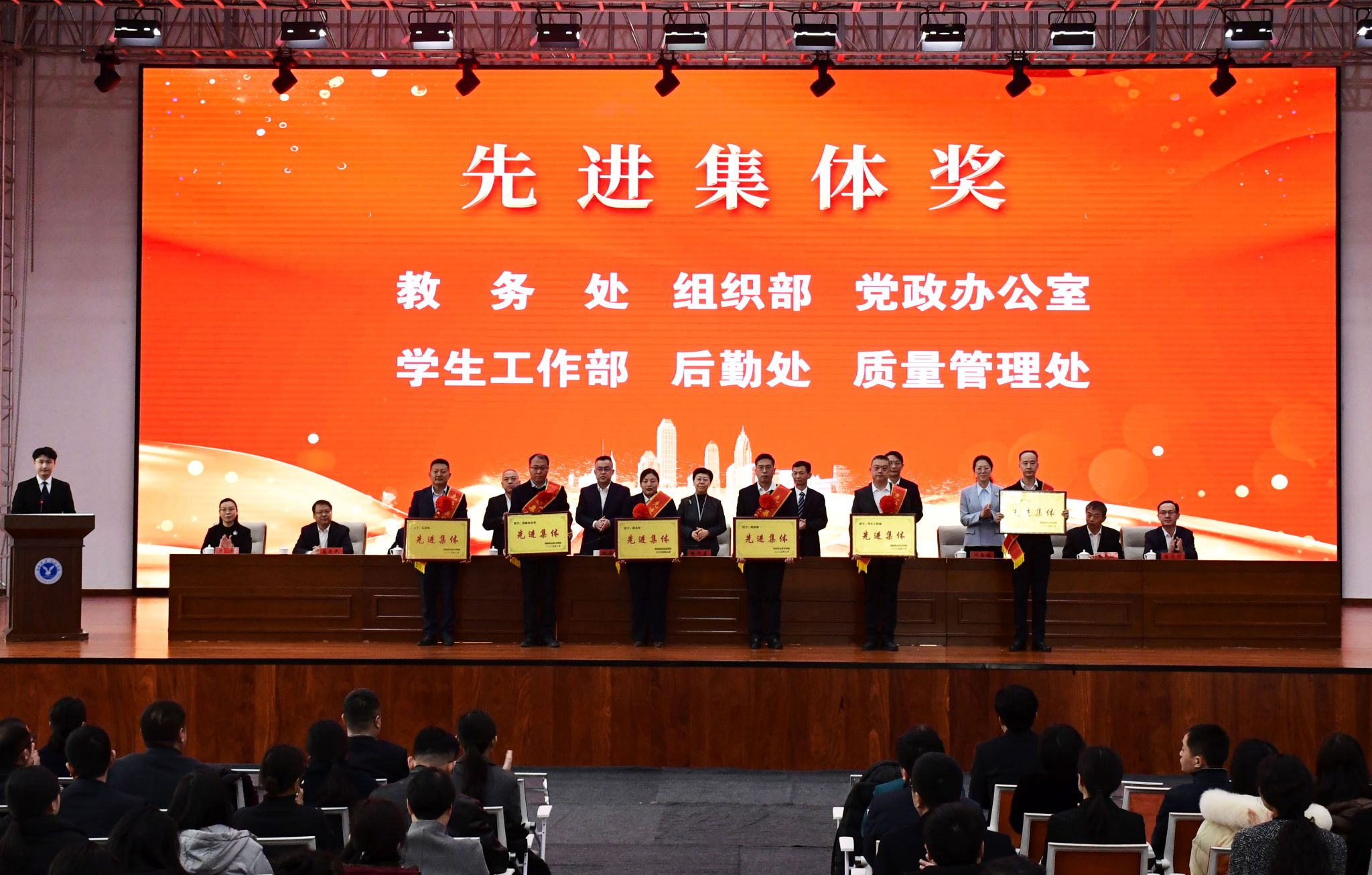 会上,全体教职工观看了催人奋进的宣传片《答卷》,共同回顾了学校2024年高质量发展的铿锵步履。党委副书记赵存吉传达了“全省高校党的建设工作会议”“全省高校党委书记全面从严治党专题培训班”“全省教育工作会议”精神,并宣读《关于表扬2024年度先进集体、先进个人的通知》。