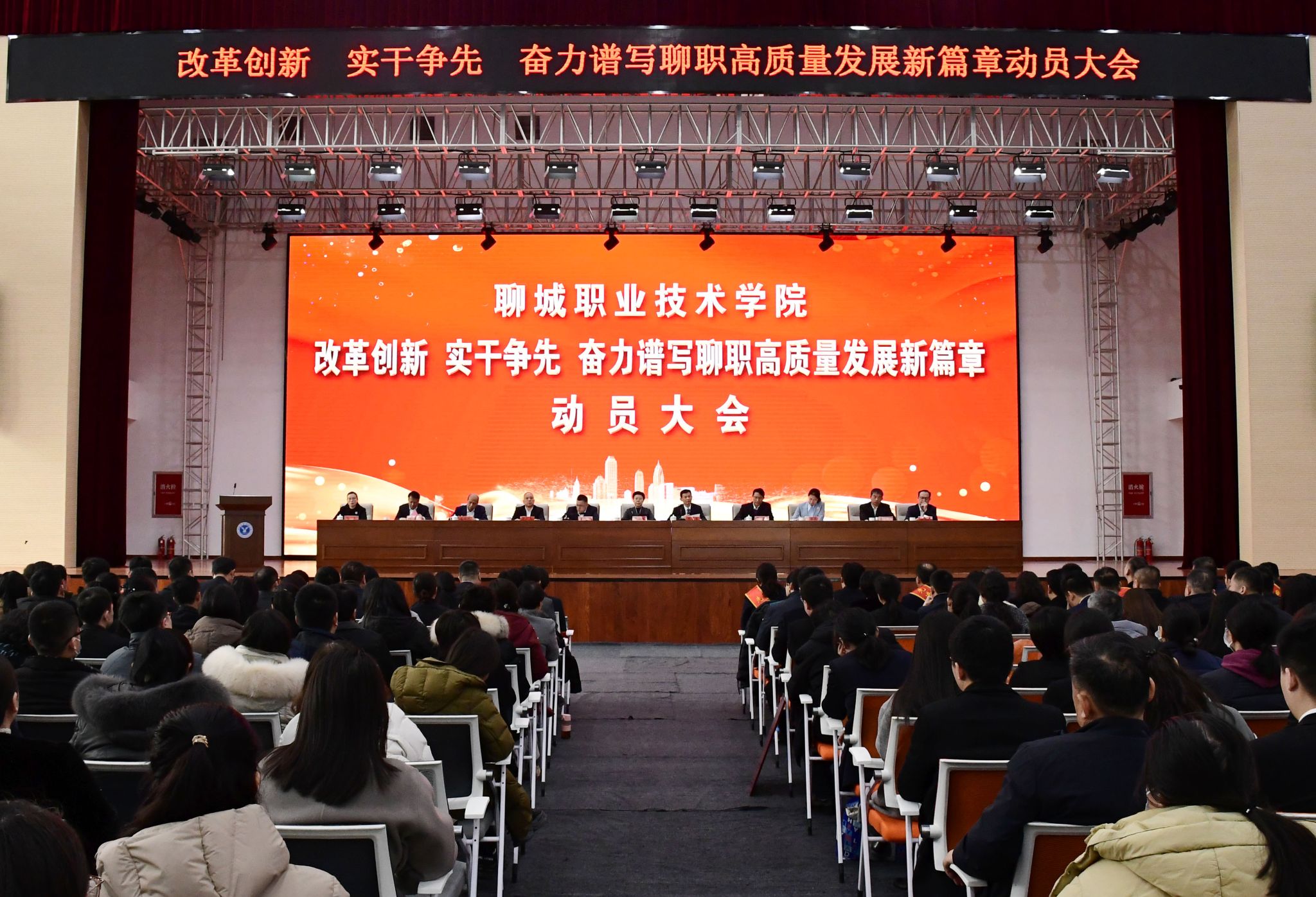 一年春作首,万事行为先。2月22日,聊城职业技术学院“改革创新、实干争先,奋力谱写聊职高质量发展新篇章”春季开学动员大会在体育馆召开。会议传达学习全国教育大会、全省教育工作会议精神,认真总结2024年工作,安排部署2025年工作重点,分析形势,统一思想,凝聚共识,动员全校上下以时不我待、只争朝夕的精神状态和锐意进取、攻坚克难的奋斗姿态,改革创新、实干争先,奋力谱写聊职高质量发展新篇章。党委书记靳凤莲主持会议。党委副书记、院长徐龙海部署2025年工作任务。全体校领导及教职员工参加会议。