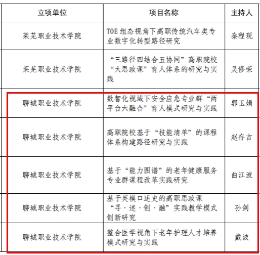 2月24日,山东省教育厅发布《关于公布2024年度山东省职业教育教学改革研究立项项目的通知》(鲁教职函〔2025〕6号),聊城职业技术学院五项课题立项。本次共有613个项目立项,其中重点项目100项。