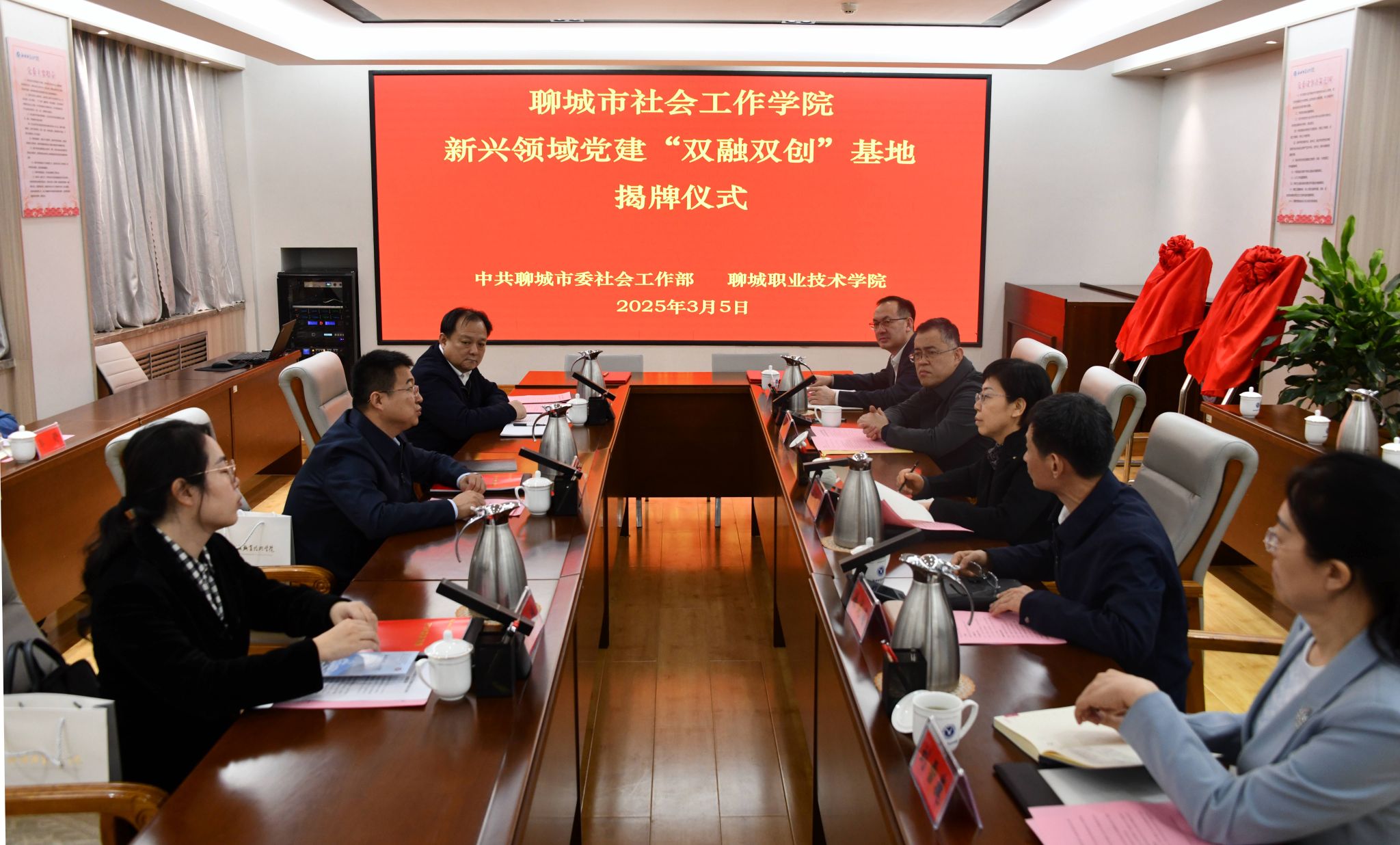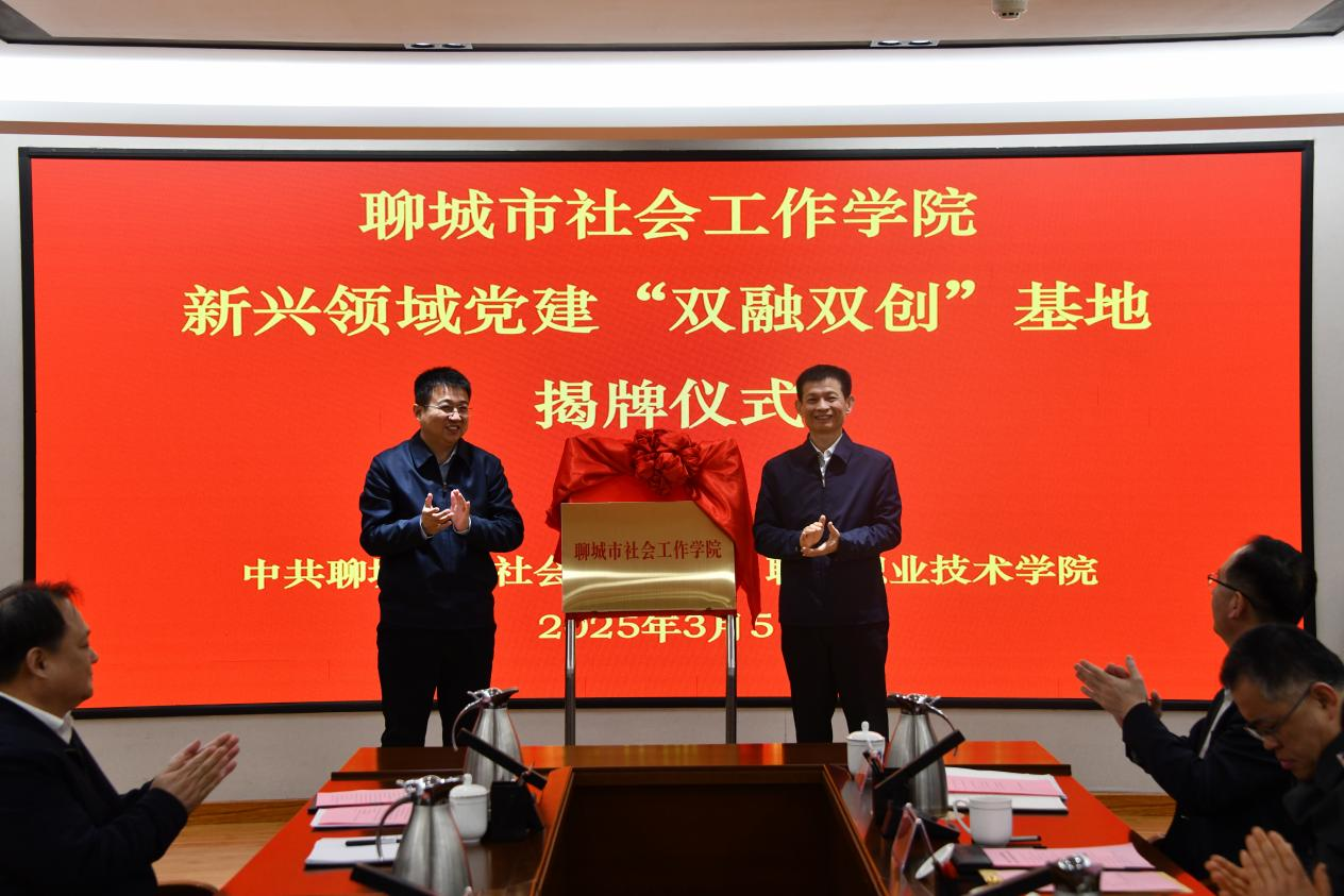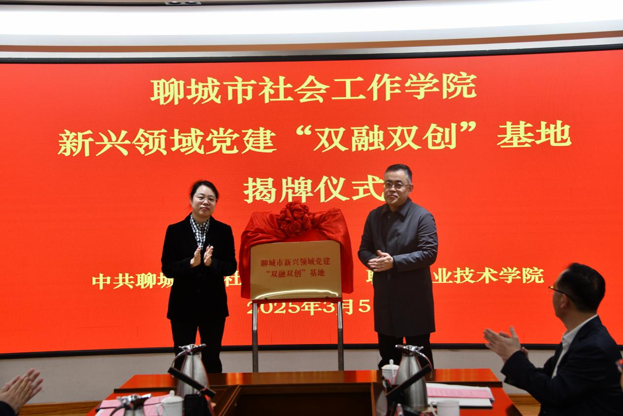 3月5日,聊城市社会工作学院和新兴领域党建“双融双创”基地揭牌仪式在聊城职业技术学院举行。