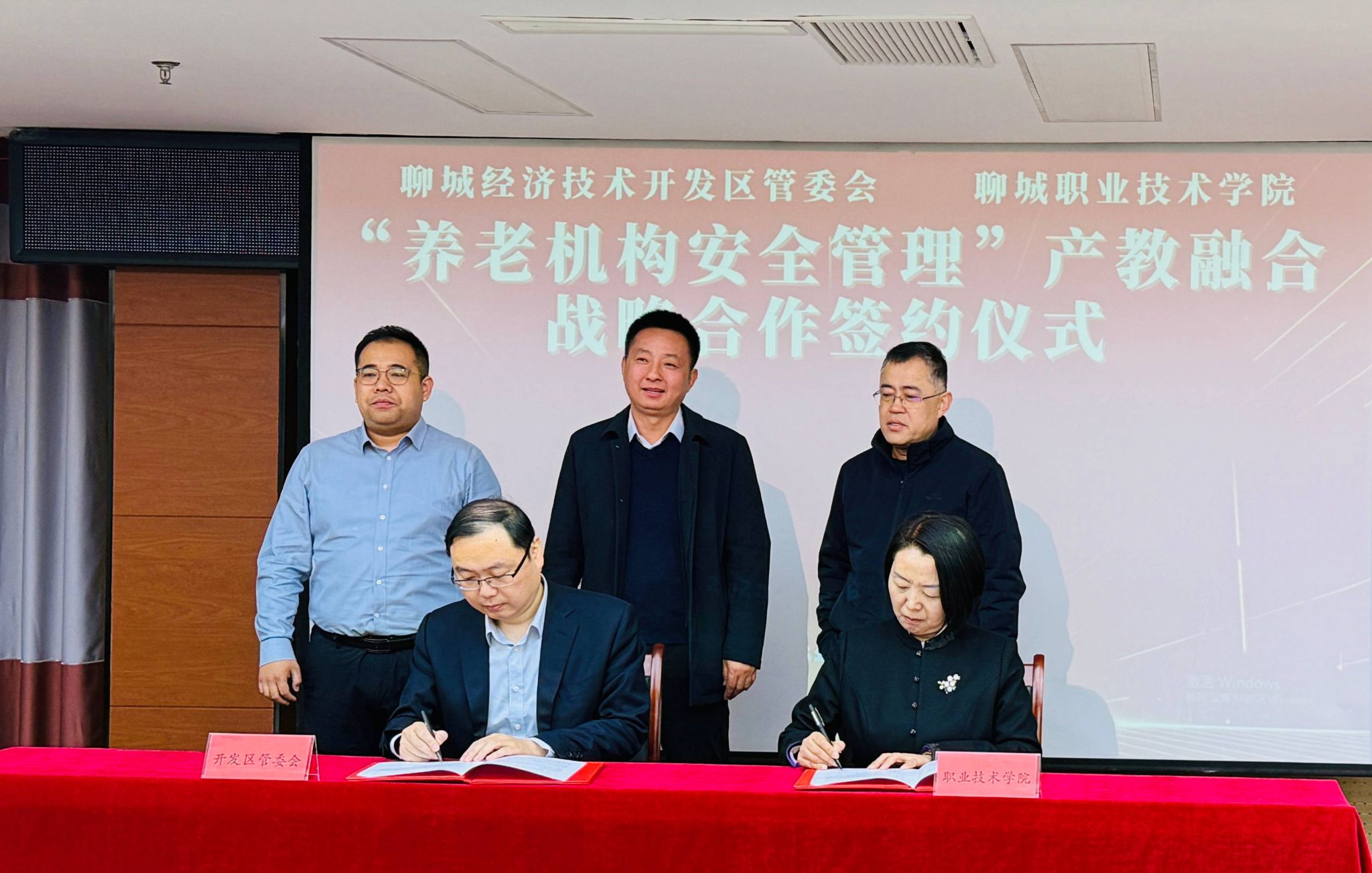 活动由我校为贯彻服务区域发展理念主动发起,并得到聊城经济技术开发区积极响应,是创新产教融合模式的积极探索。通过应急管理学院与开发区中心敬老院签署战略合作协议,双方将重点围绕养老机构安全管理体系构建、双方资源整合、安全管理人才培养等领域开展深度合作。该项目旨在建立"校-政-企"协同推进机制,打造产教融合创新示范基地,通过构建"教育链-人才链-服务链"三链融合的发展模式,推动职业教育与区域养老安全应急体系建设的有机衔接,实现安全应急专业建设与养老服务机构发展的协同共进。