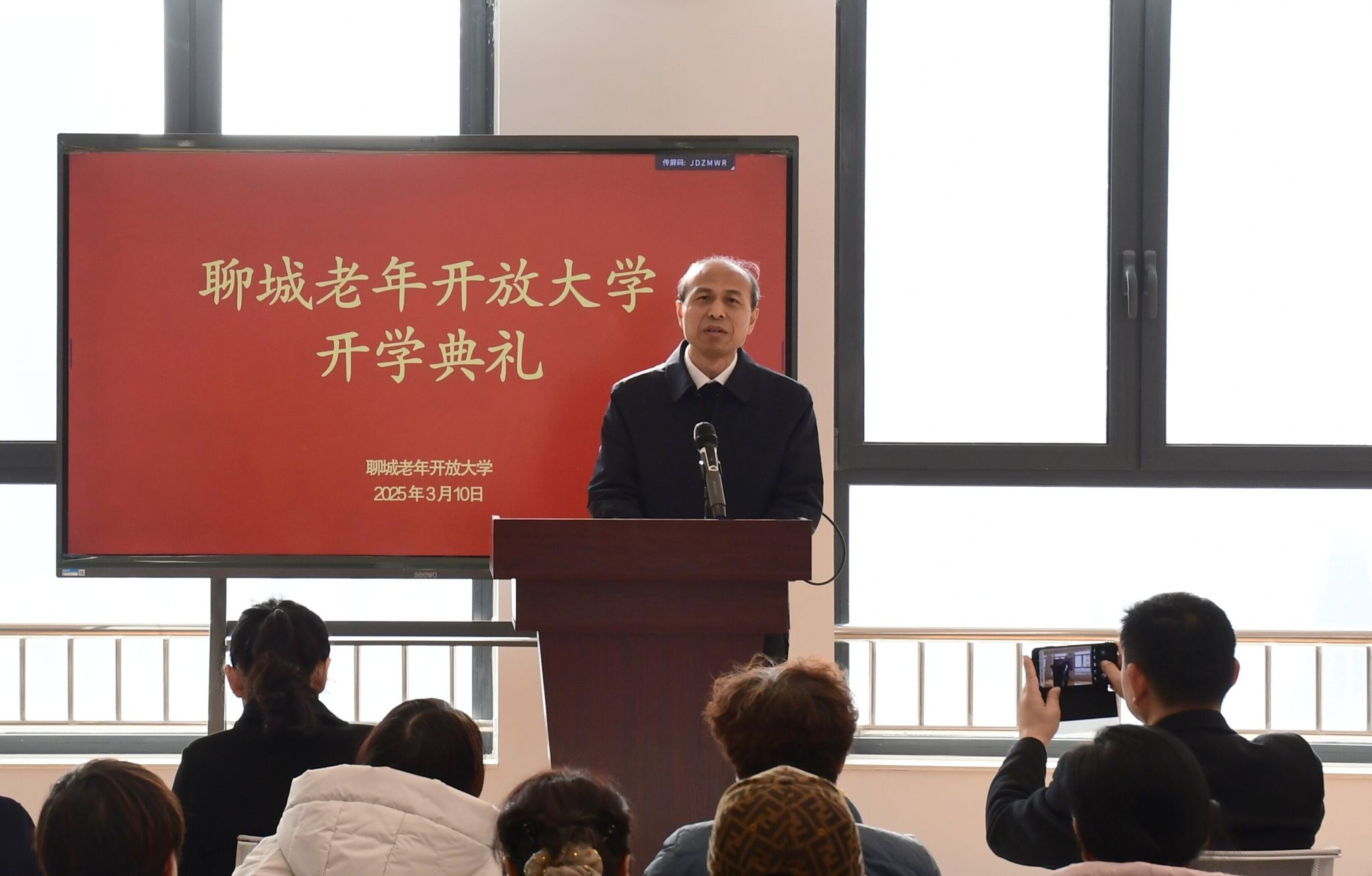 3月10日,聊城老年开放大学在聊城市智能(仿真)综合性公共实训基地“全民终身学习活动中心”举行2025年春季开学典礼。聊城职业技术学院党委委员、副院长高绪斌出席并讲话。继续教育中心全体教师及聊城老年开放大学全体教师及学员参加活动。