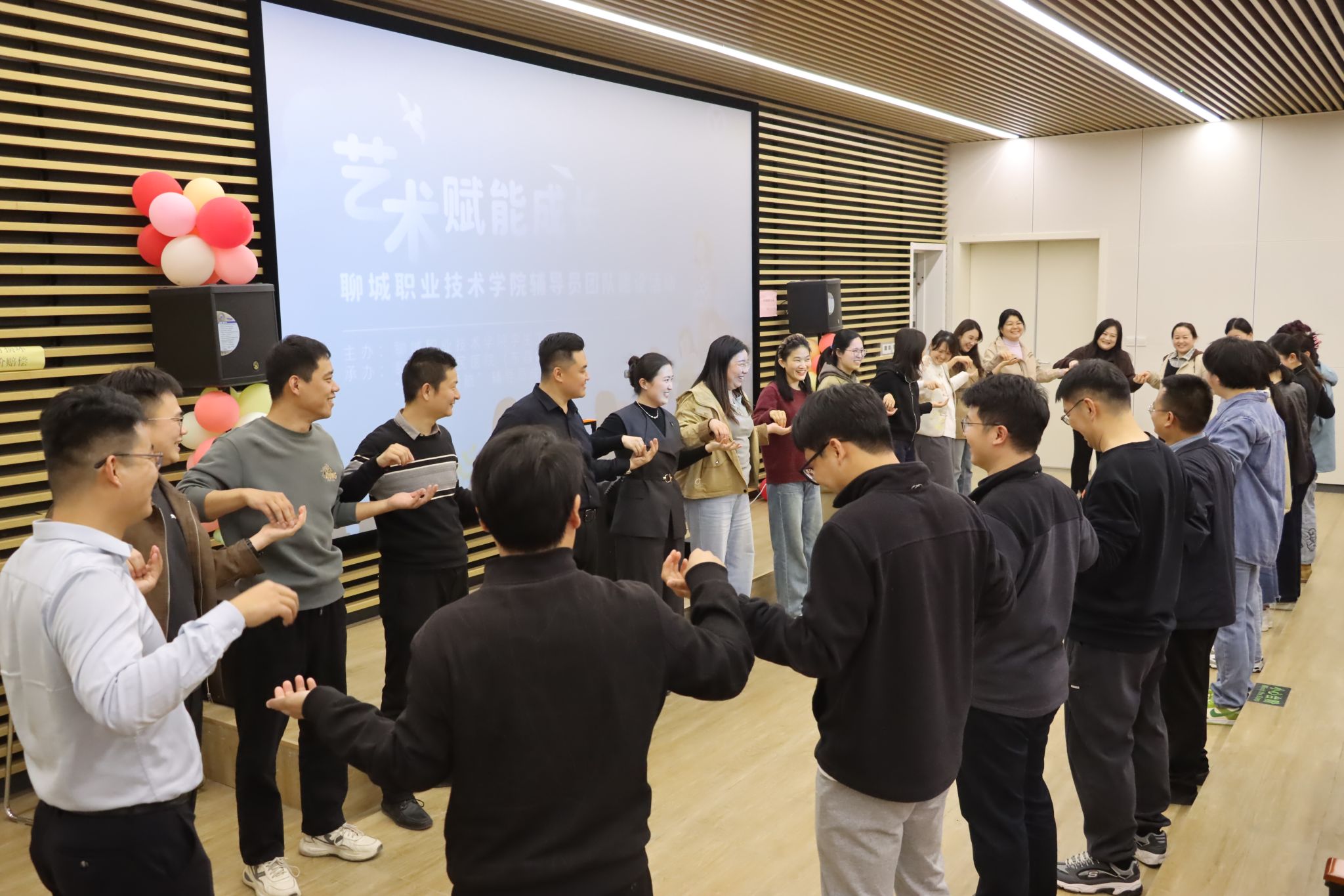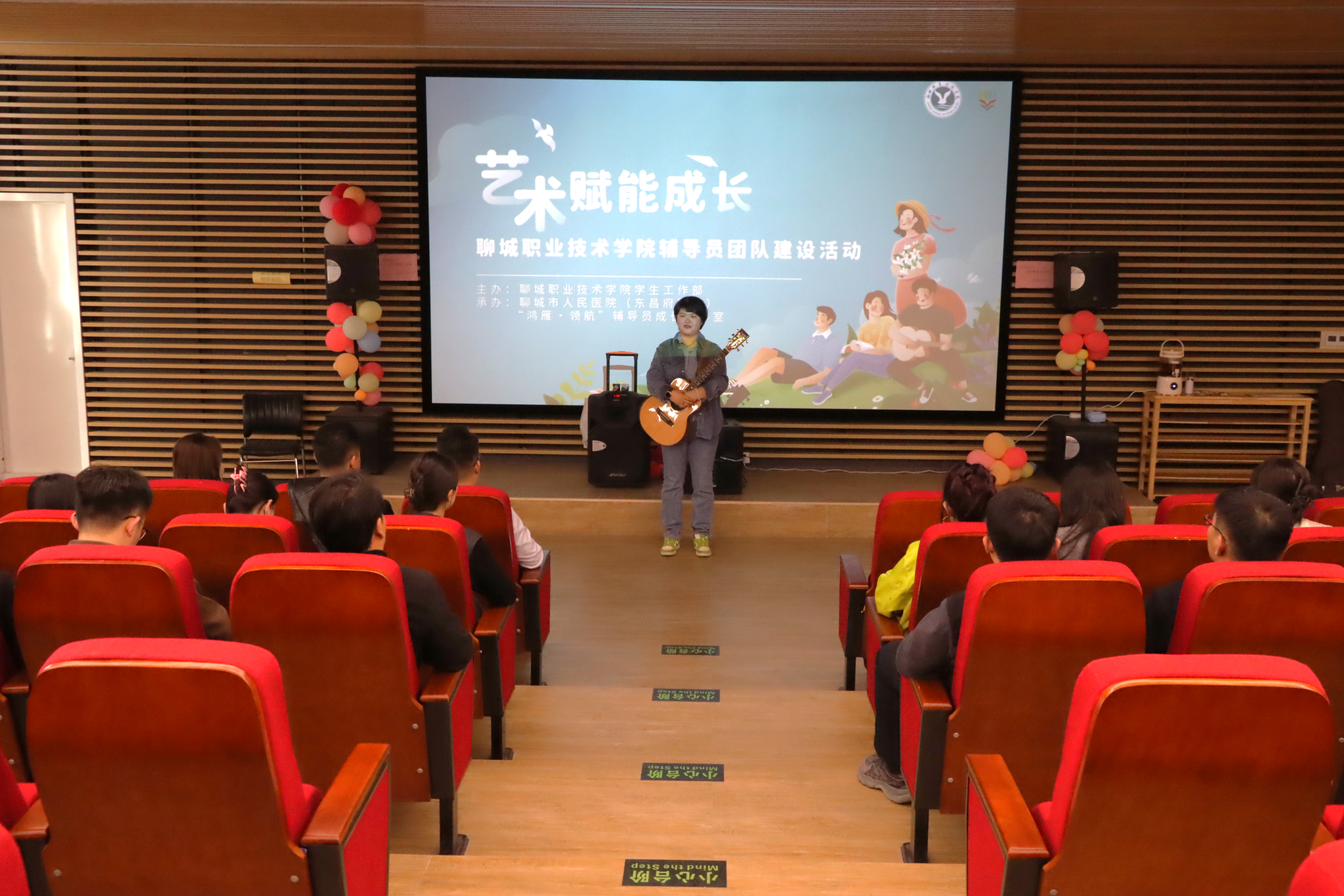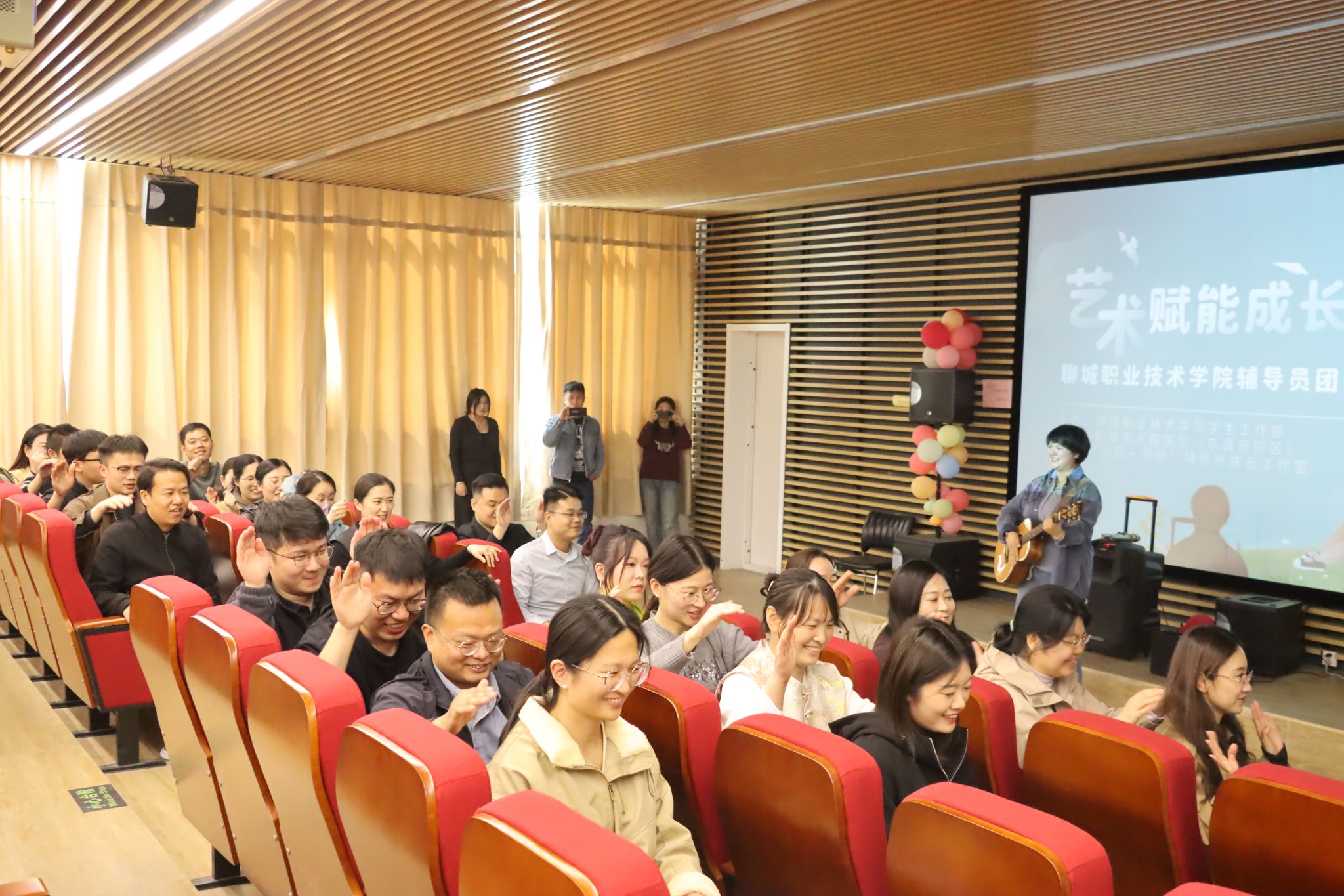 活动现场,聊城市人民医院(东昌府院区)艺术疗愈中心葛暘老师以理论讲解与实操体验相结合的方式,带领辅导员们开启了一段奇妙的心灵之旅。大家通过音乐体验、互动交流等方式进一步强化了沟通力和团队协作力,用艺术赋予了辅导员职业新的意义,也为自己开启了职业发展之门的钥匙。