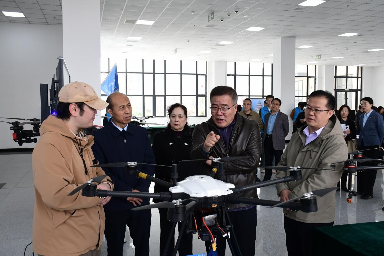 赵敬波一行参观了无人机组装、调试、应用(无人机测绘、植保与文物数字化),并就服务于低空经济的无人机产业链上的相关环节与师生交流,对植保无人机应用和软件开发以及文物数字化库的建设给出积极评价,对无人机创新成果及助力乡村建设给予认可。