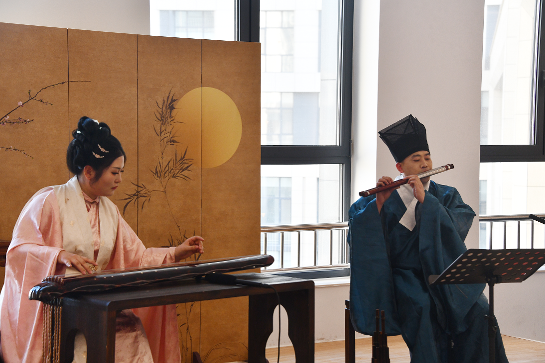 基础部传统文化教研室教师刘洋首先为大家介绍了中国礼乐文化与古琴雅集的相关知识。艺术家们则以交替演奏的方式,分别向到场嘉宾们展示了古琴与笙的演奏。